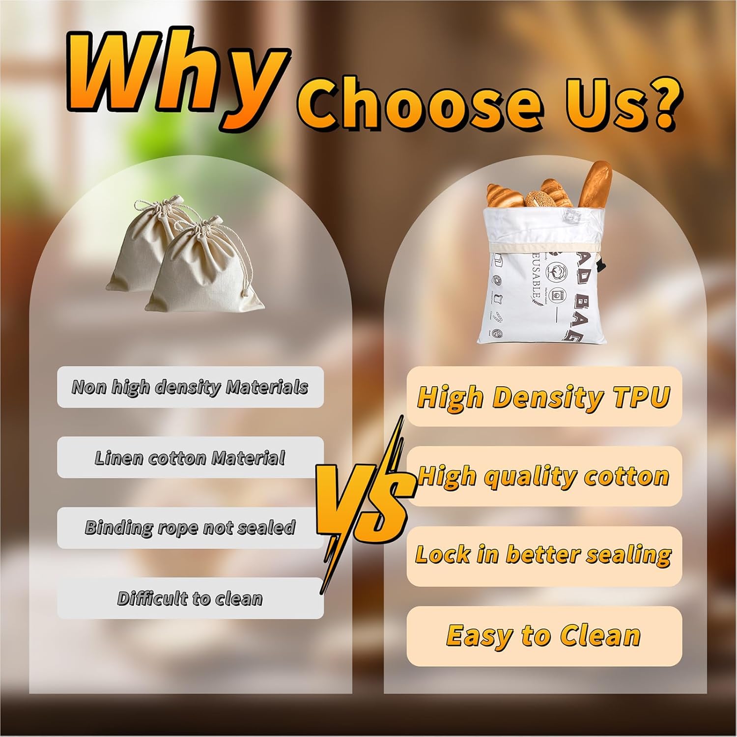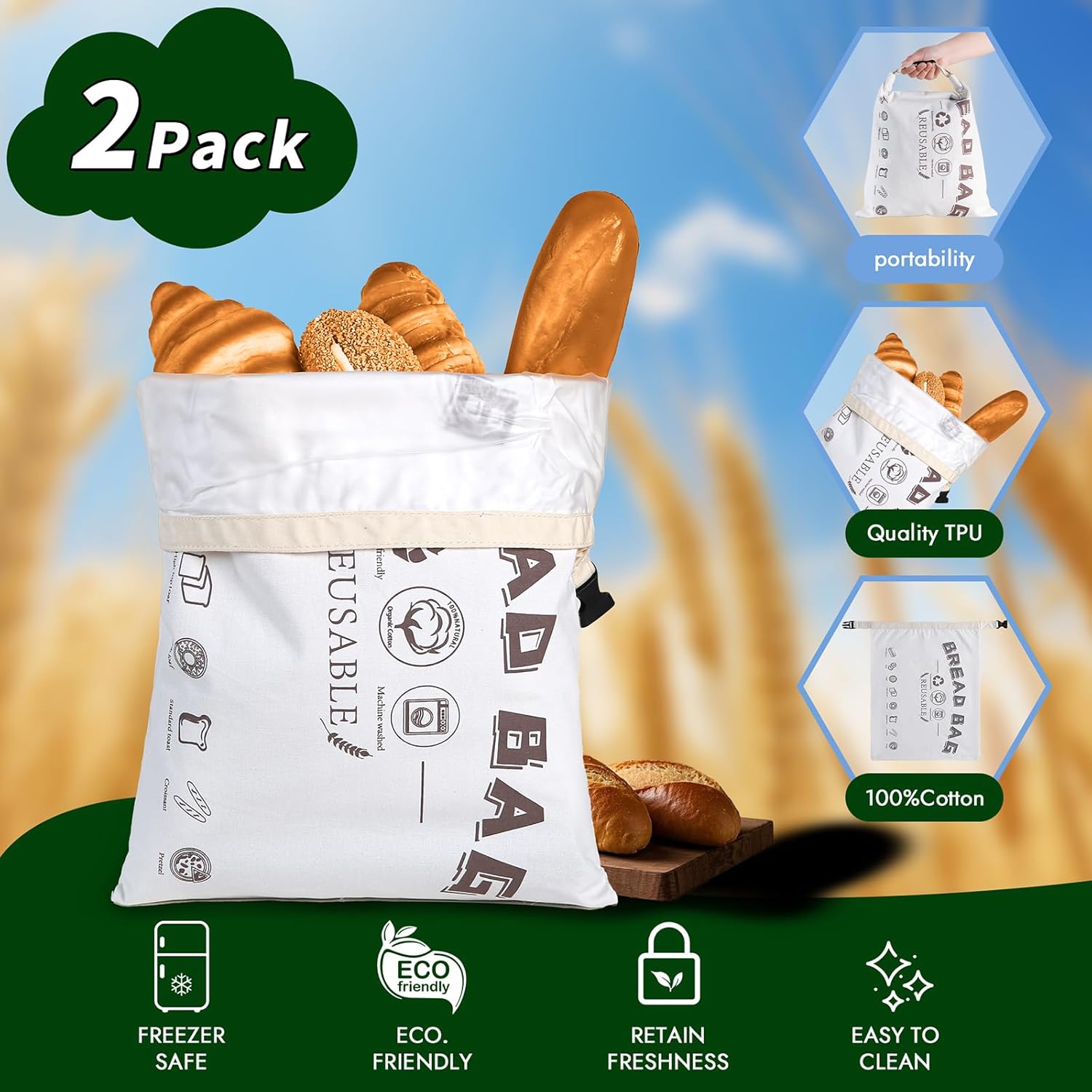 - REUSABLE AND EASY TO CLEAN: Eco-friendly and durable, The cotton bread Bag can be reused multiple times. The oil resistant TPU inner lining makes cleaning a breeze—simply wipe it with cold water or hand wash for quick and hassle-free maintenance