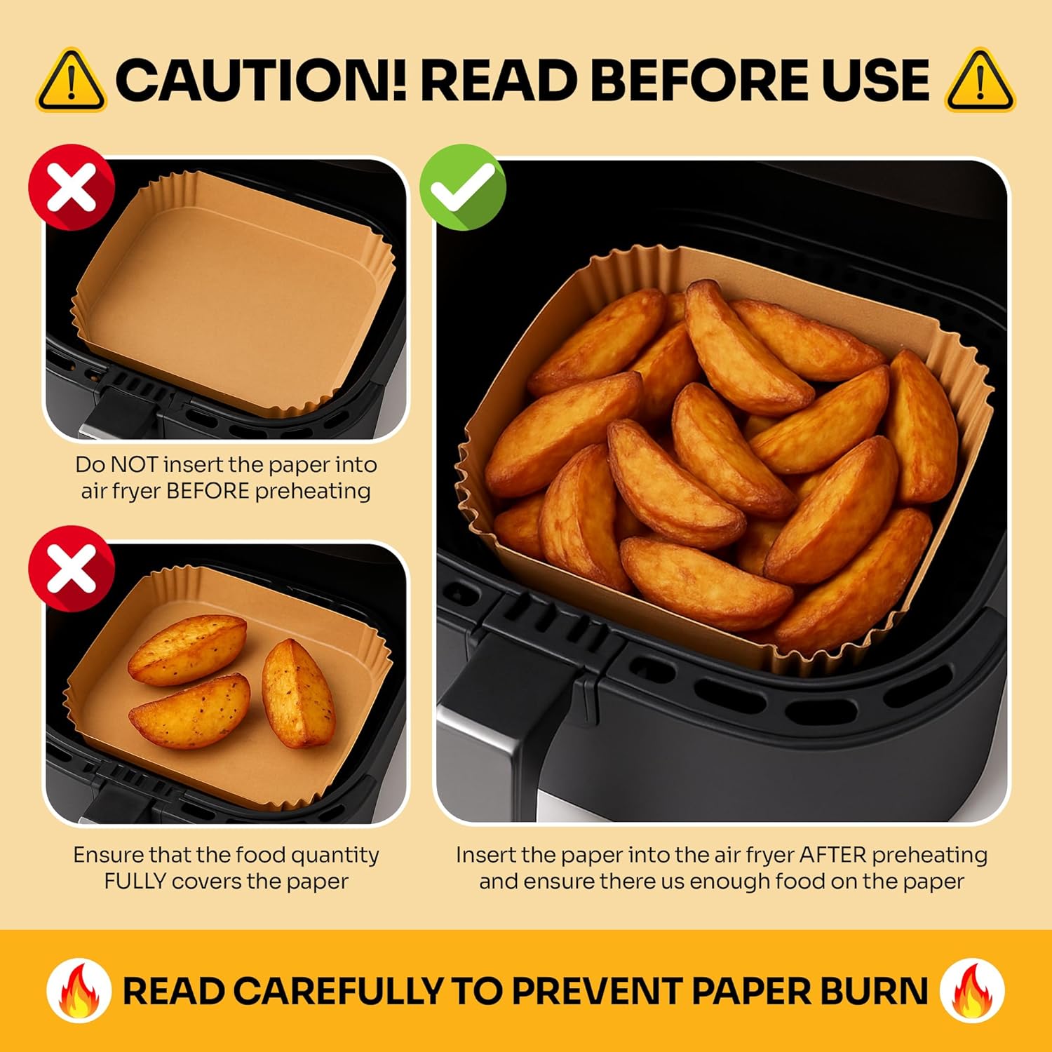 - Easy Cleanup: No more scrubbing or soaking your air fryer basket. Our non-stick parchment paper liners make cleanup a breeze, saving you time and effort after every cooking session.