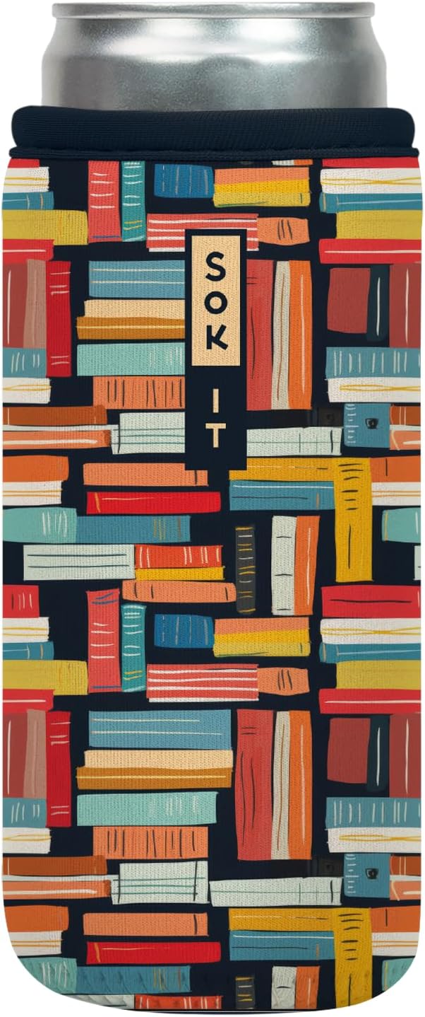 Sok It CanSok Sleeve for Beer & Soda Insulated Neoprene Cover (Well Read, 12oz Slim Can Sleeve)