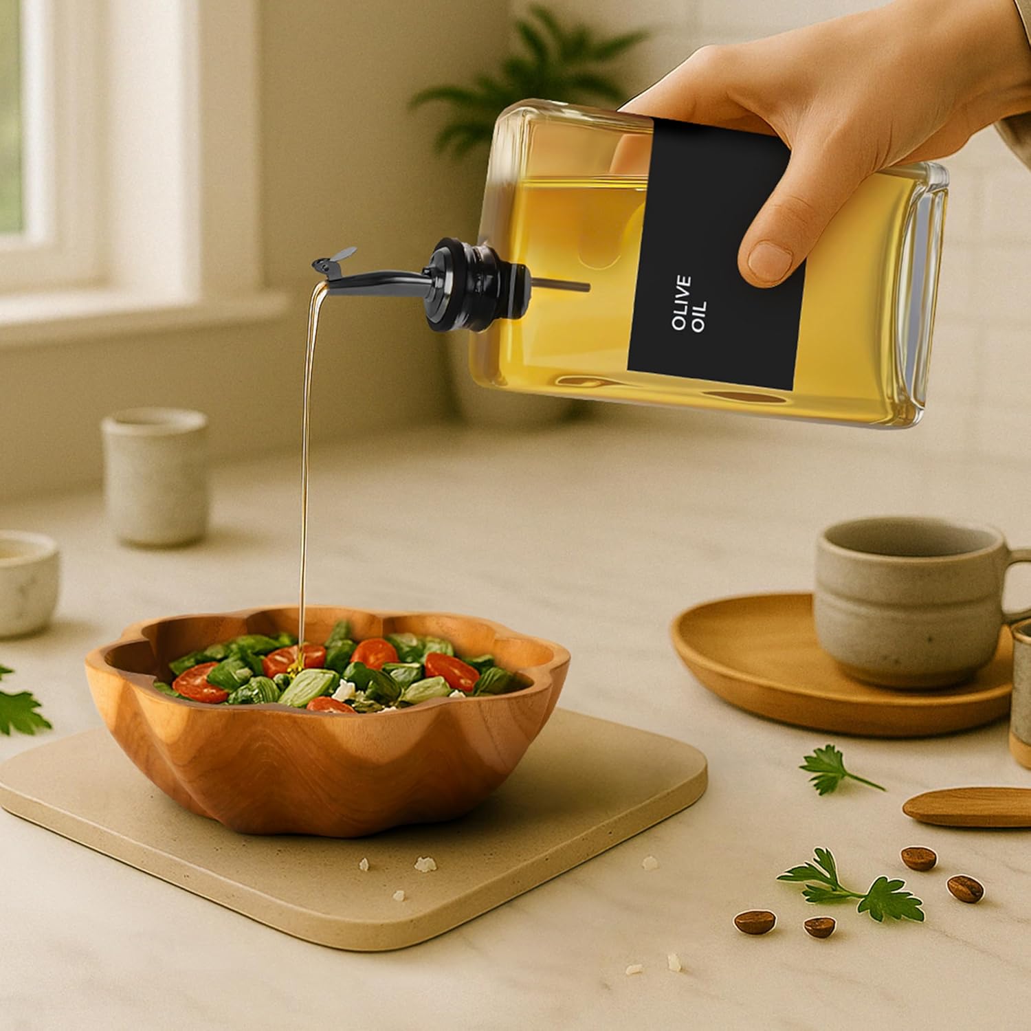 - Mess-Free Precision Pouring – Our glass oil dispenser features a sleek, drip-free spout for effortless drizzling and portion control. Perfect for salad dressings, cooking oils, and infused vinegars.