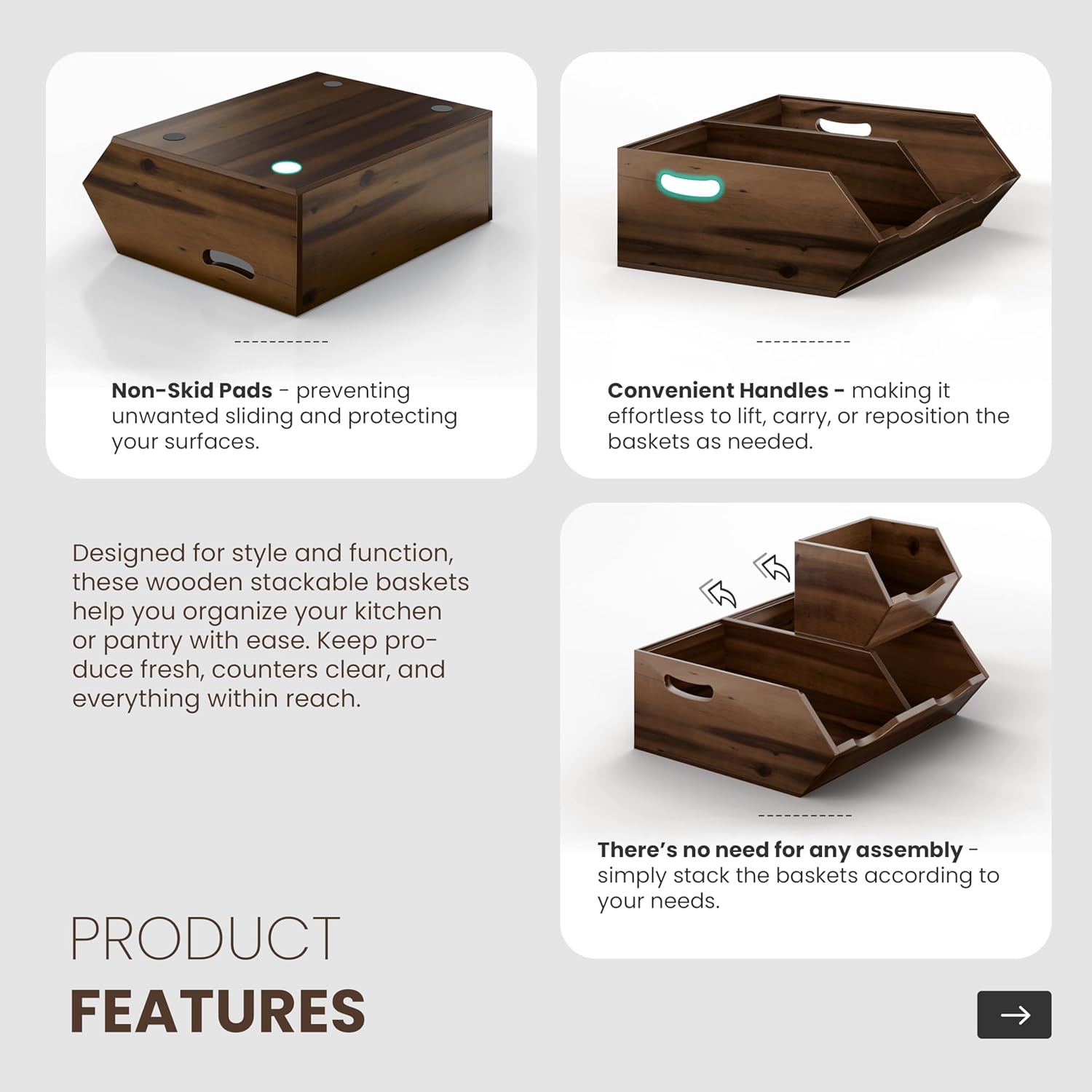 - No Assembly Needed, Stackable Convenience: These wooden stackable storage bins require no setup. Simply stack or separate them for your custom potato storage for pantry or general pantry baskets organization.