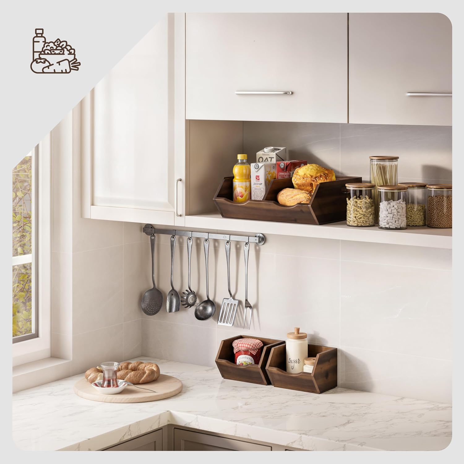 - Multi-Room Utility for Kitchen Storage Organization: These wooden stackable storage bins are ideal for use in the kitchen, bathroom, or pantry. Perfect as pantry organizers and storage, they fit under sinks, over toilets, and inside cabinets.