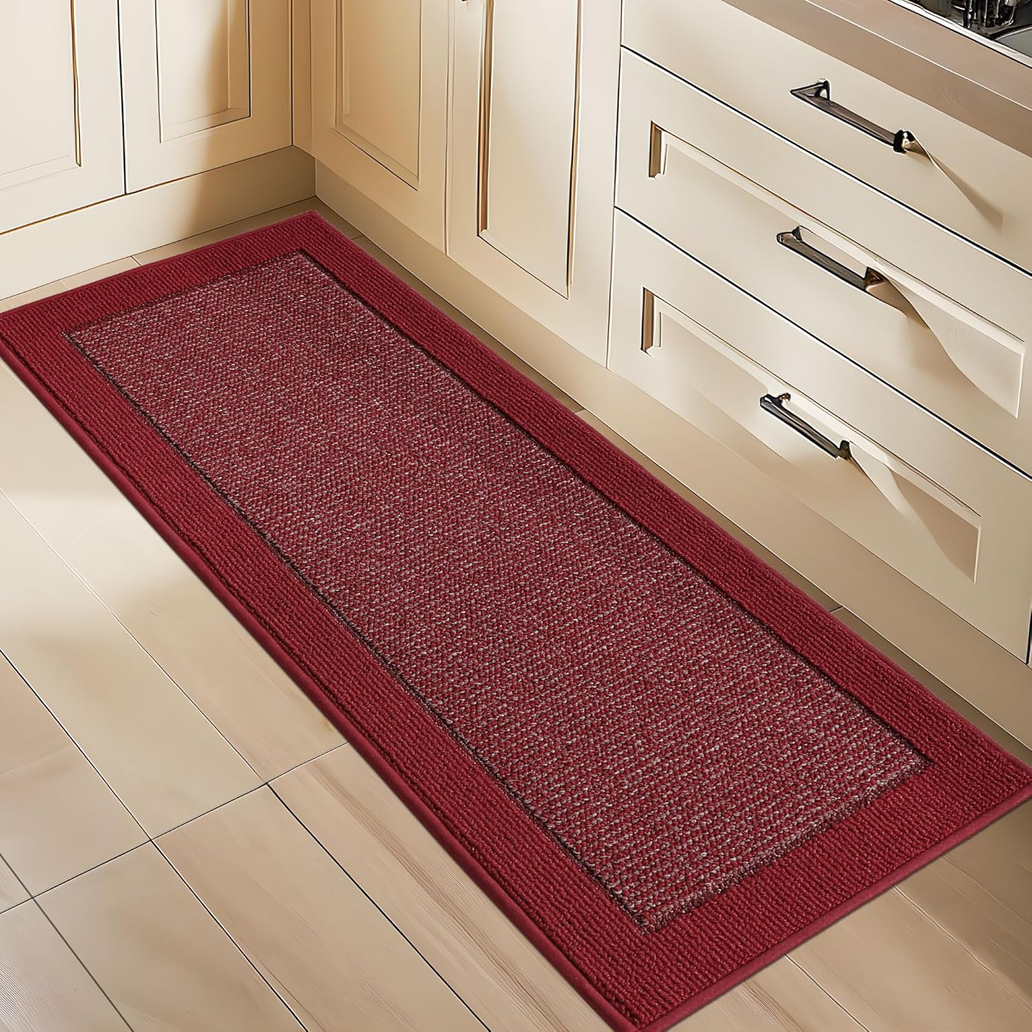 BEQHAUSE Kitchen Runner Rugs 24"x60", Kitchen Rugs Non-Slip Kitchen Mats for Floor, Absorbent and Stain Resistant Kitchen Mats, Machine Washable Rug for Kitchen, Hallway, Laundry & Sink, Red