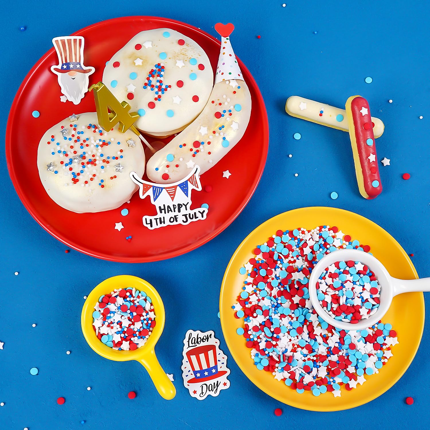 - 【Patriotic Sprinkles Mix】Our red/white/blue sugar stars + pearls combo creates dynamic texture for flag cakes, firework cupcakes, and liberty bell cookies. Mix-size design clings perfectly to July 4th cake pops, patriotic parfaits, and freedom fries desserts.