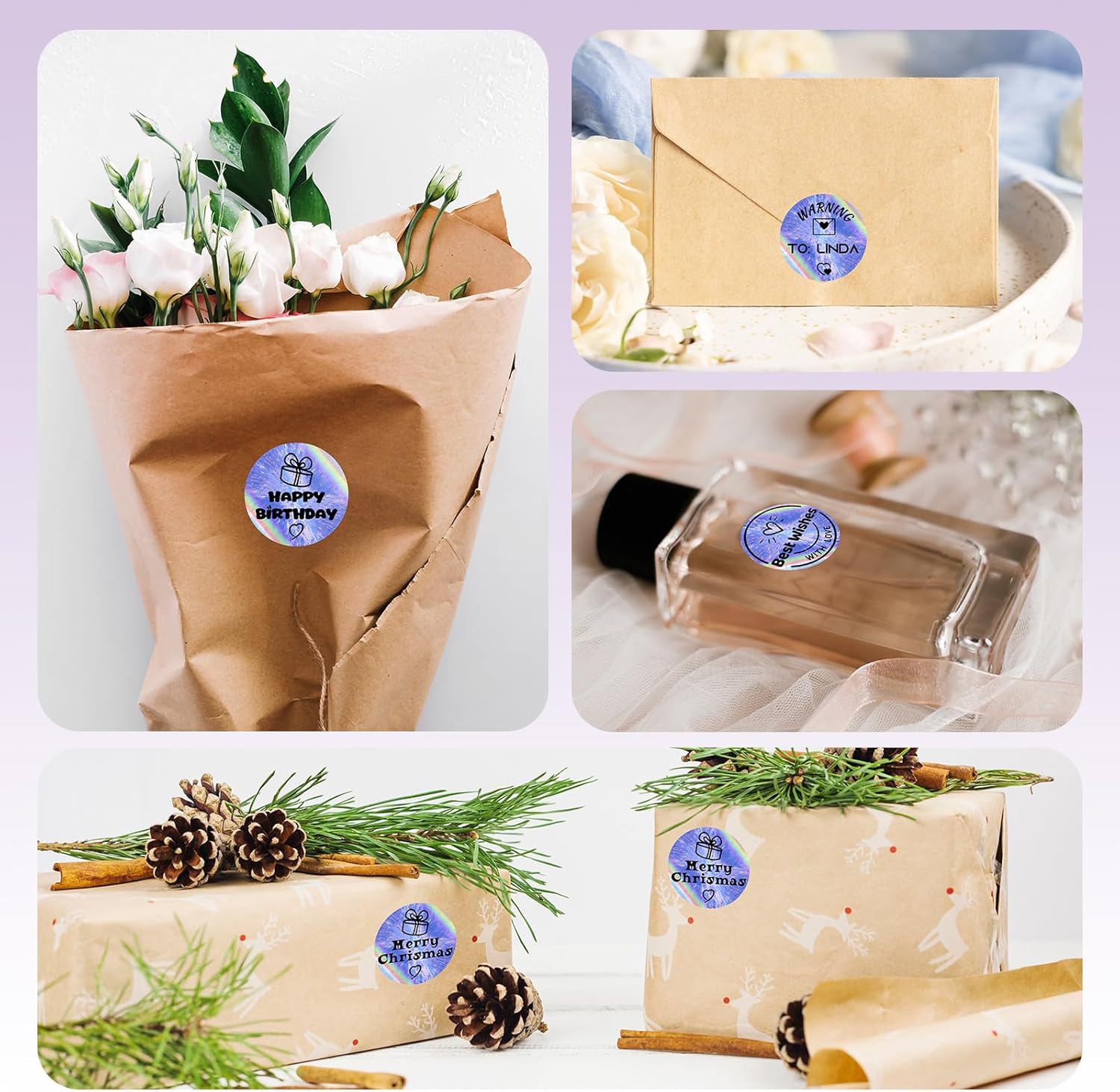 - Unique Design: The surface of the thermal labels can be changed under the light with the move, giving you amazing visual experience.The dynamic laser effect on thermal labels makes your products stand out.