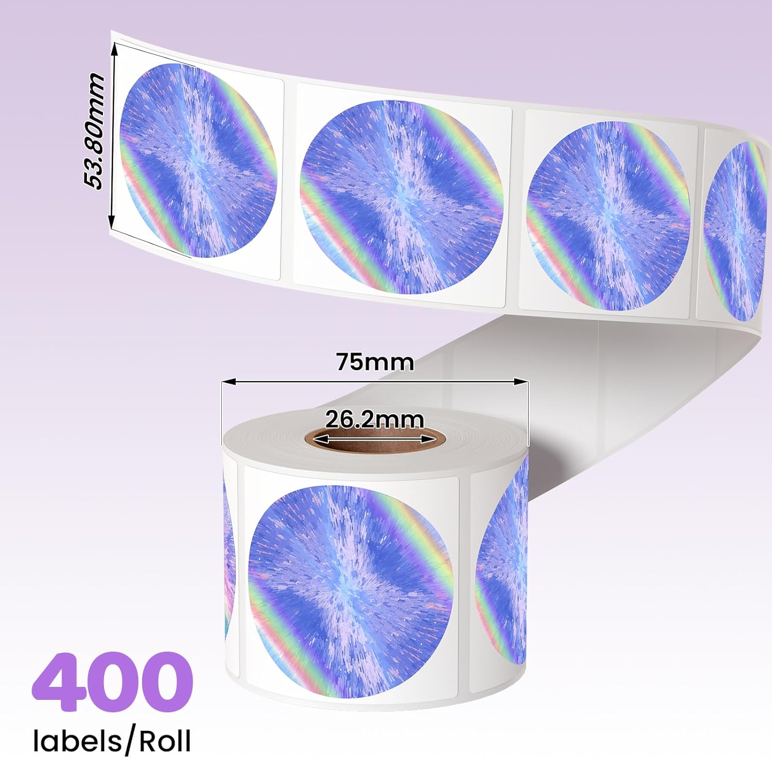 2 Inch Round Laser Rainbow Thermal Label, Waterproof and Self-Adhesive Thermal Printer Labels for Gift Wrapping, Custom Logo Design, Thanks Card, Name & Price Tag, 400 Labels/Roll