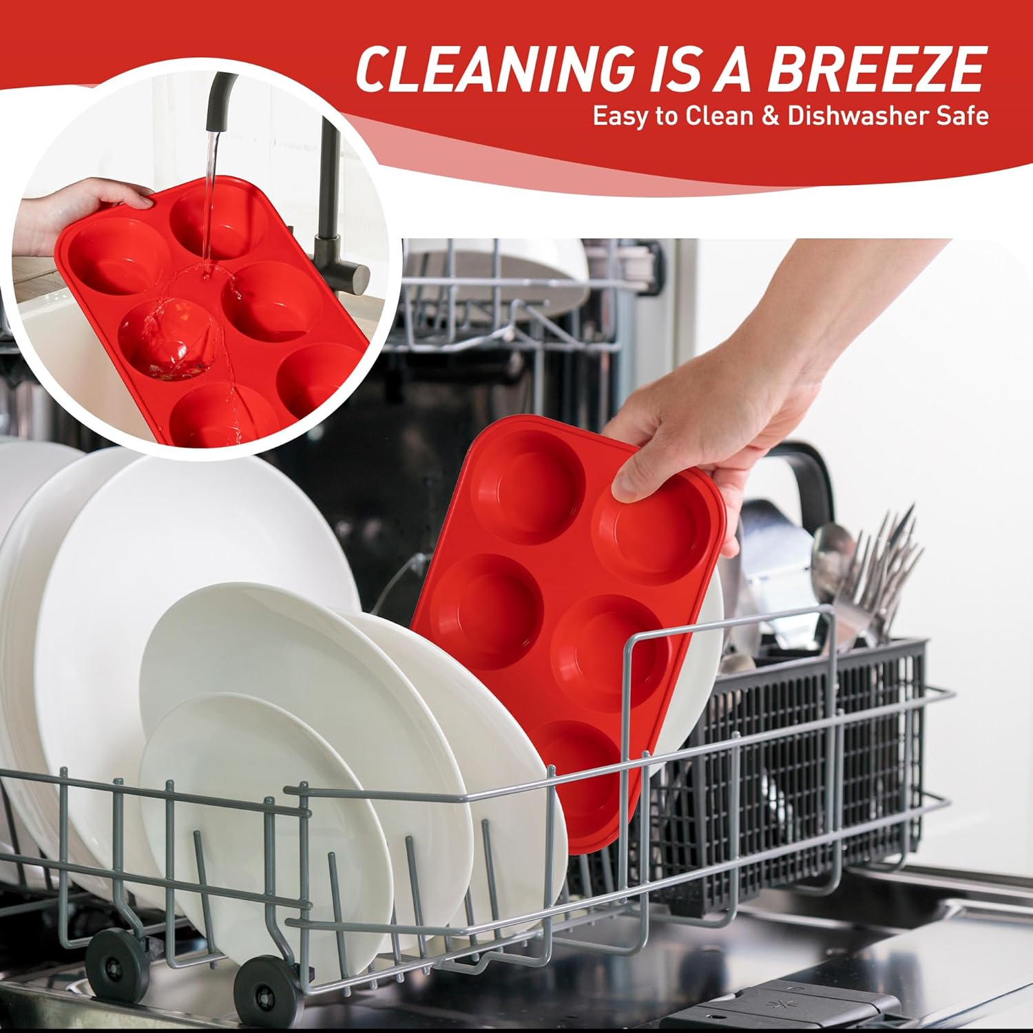 - Food Grade Silicone Muffin Tray: Safe for the oven, microwave, dishwasher, fridge, and freezer. With an impressive heat resistance range from -104°F to 446°F, it’s perfect for all your favorite baked goods. thick walls prevent heat transfer to countertops – safer than other thin plastic baking cupcake muffin pans. Food grade silicone of our baking cupcake muffin pans, maintaining 99% "like-new" appearance after heavy use.