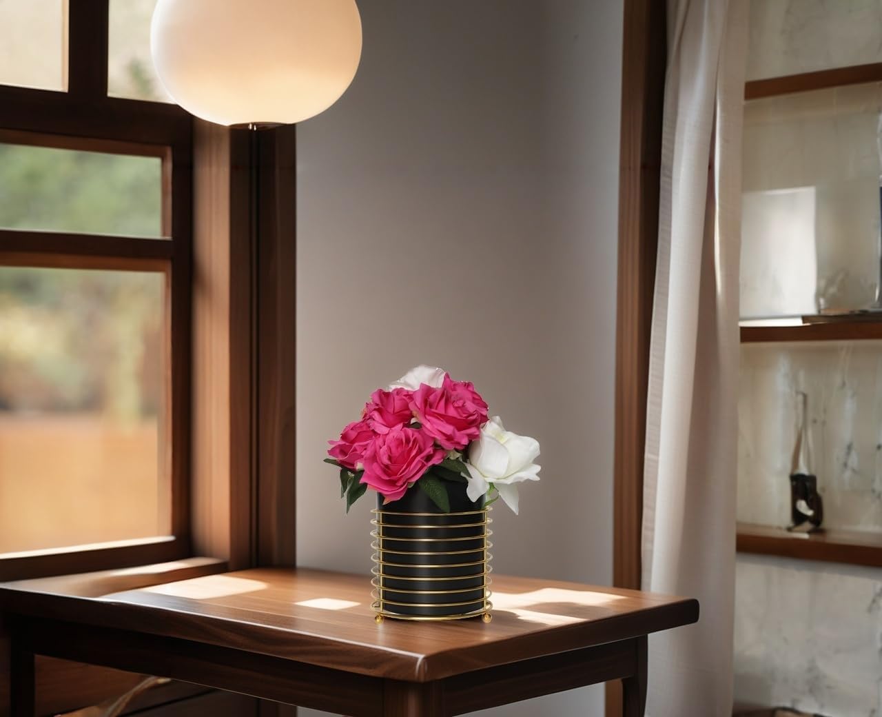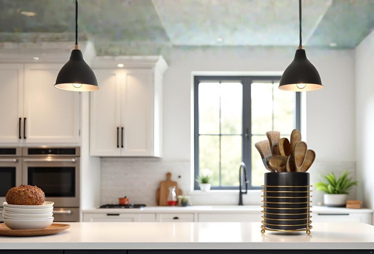 Dining Utensil Holder Cooking Utensil Holder,Gold Ring Metal Frame and Black Ceramics