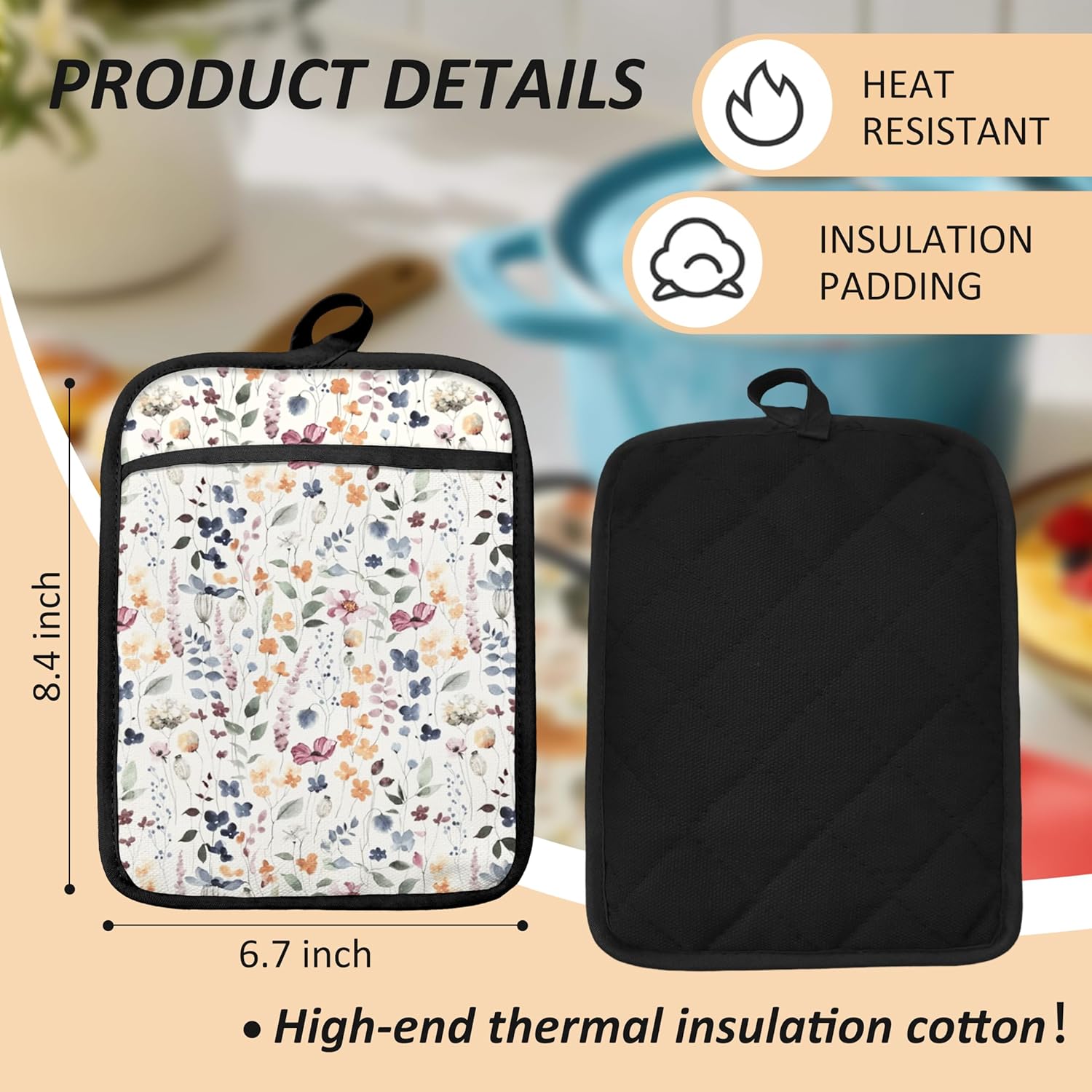 Vintage Floral Oven Mitts Set, Colorful Wildflowers Floral Heat Resistant Kitchen Oven Gloves for Baking and Cooking,Pot Holders