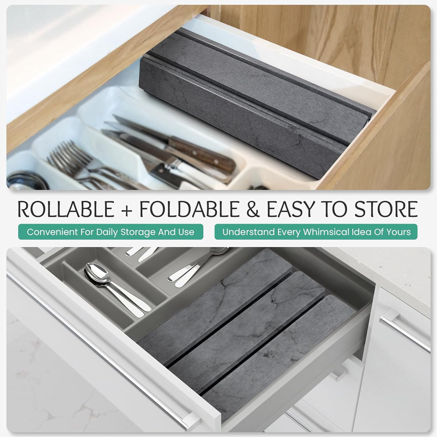 - 【Foldable&Rollable Design】:The drain mat what we designed is foldable and rollable,efficiently helping you achieve the idea of convenient storage.When not in use,can be folded or rolled up and placed in kitchen drawers,cabinets,clothing drawers etc;when during use,its large size provides spacious space for the tableware,cookware,cups etc.It comes with PVC anti slip pad that can be used together to achieve double-sided anti slip and double safety.Our absorbent mat to enables your kitchen countertops to be clean and organized.