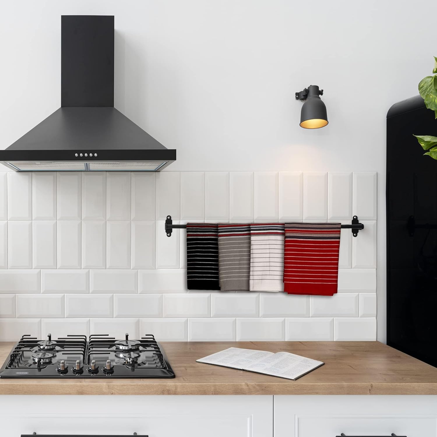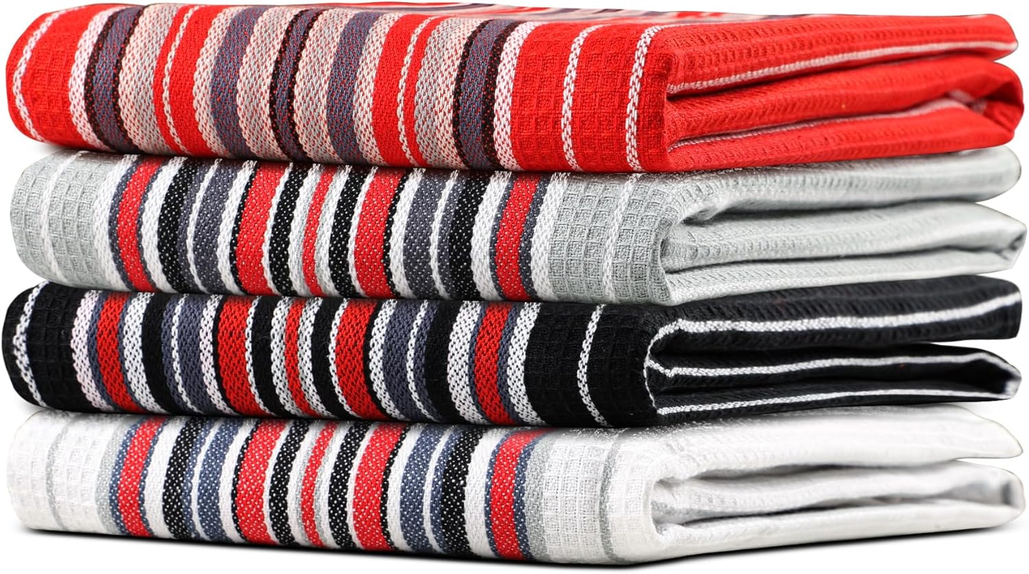 Urban Villa Kitchen Towels (20x30 Inches 4 Pack) Extra Large Premium Salsa Stripes Dish Towels for Kitchen Dish Cloths Highly Absorbent 100% Cotton Kitchen Hand Towels with Hanging Loop Tea Towels