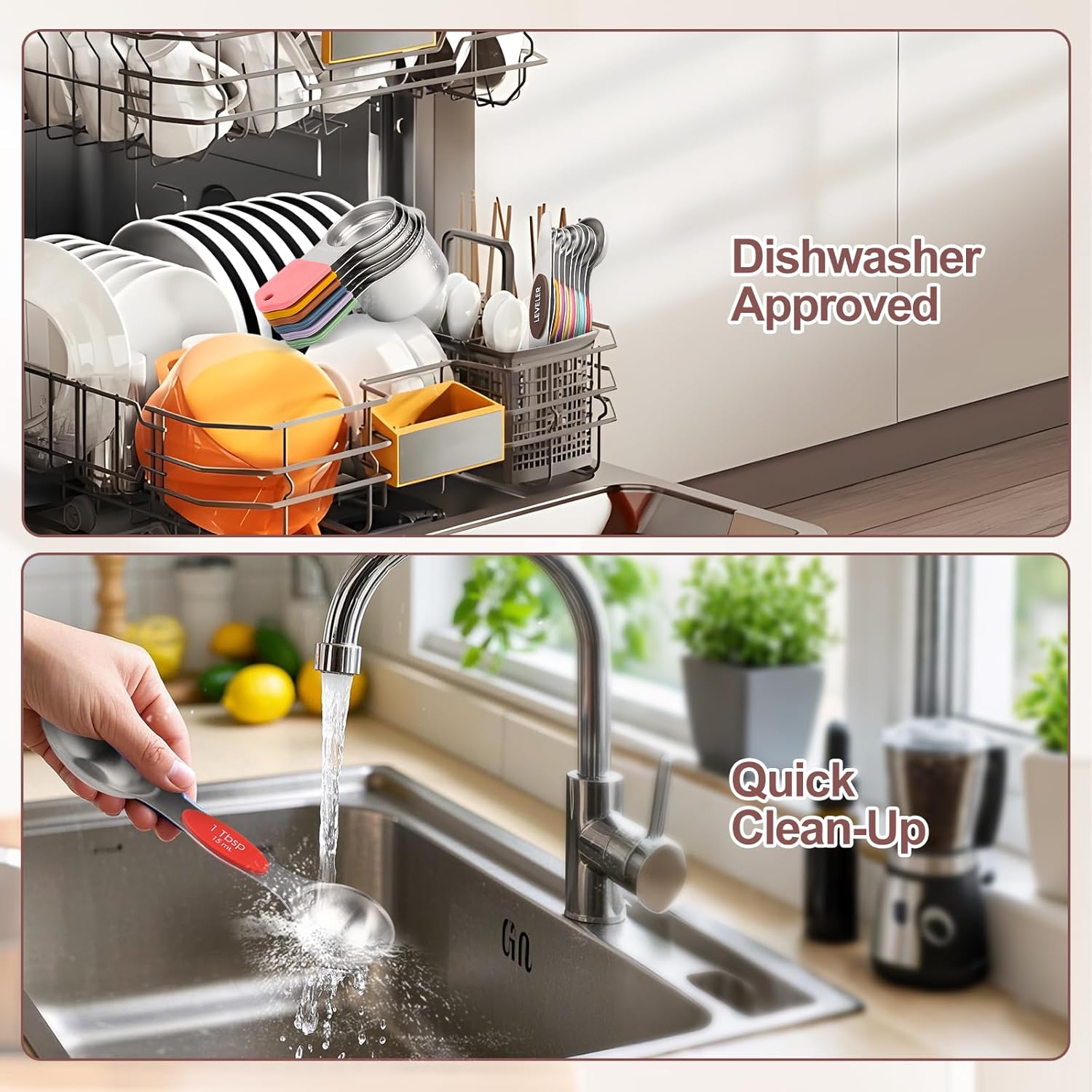 - Non-Slip Silicone Handles: Unlike slippery all-metal measuring tools, our stainless steel cups/spoons have heat-resistant silicone grips (450°F) for a secure hold—even with oily or sticky ingredients