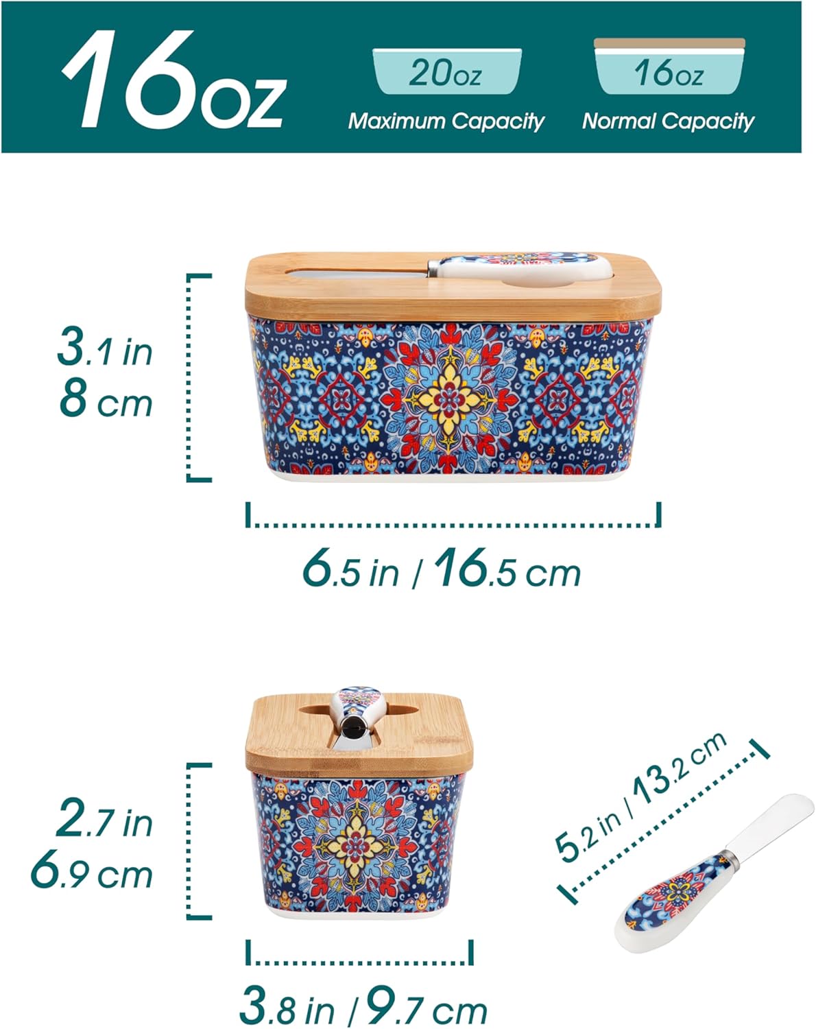 - 【Vibrant and Colorful Designs】vancasso bohemian style Butter Dish with Lid boast enchanting and intricate designs that capture the free-spirited essence of Bohemian culture. The lively colors and artistic patterns evoke a sense of joy and positivity, enhancing your dining experience with a burst of energy and happiness.
