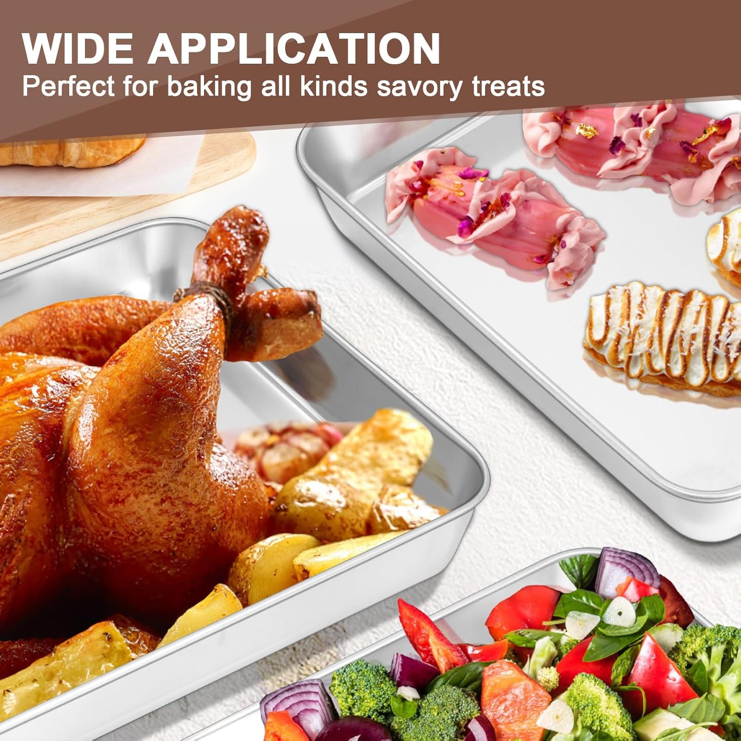 Baking Pans Set of 3, Commercial Grade Stainless Steel Cookie Pan for Baking, 12/10/9 Inch, Rectangle Bakeware Set for Cakes Breads Lasagna Casseroles, Rust & Warp Resistant & Nonstick, Heavy Duty