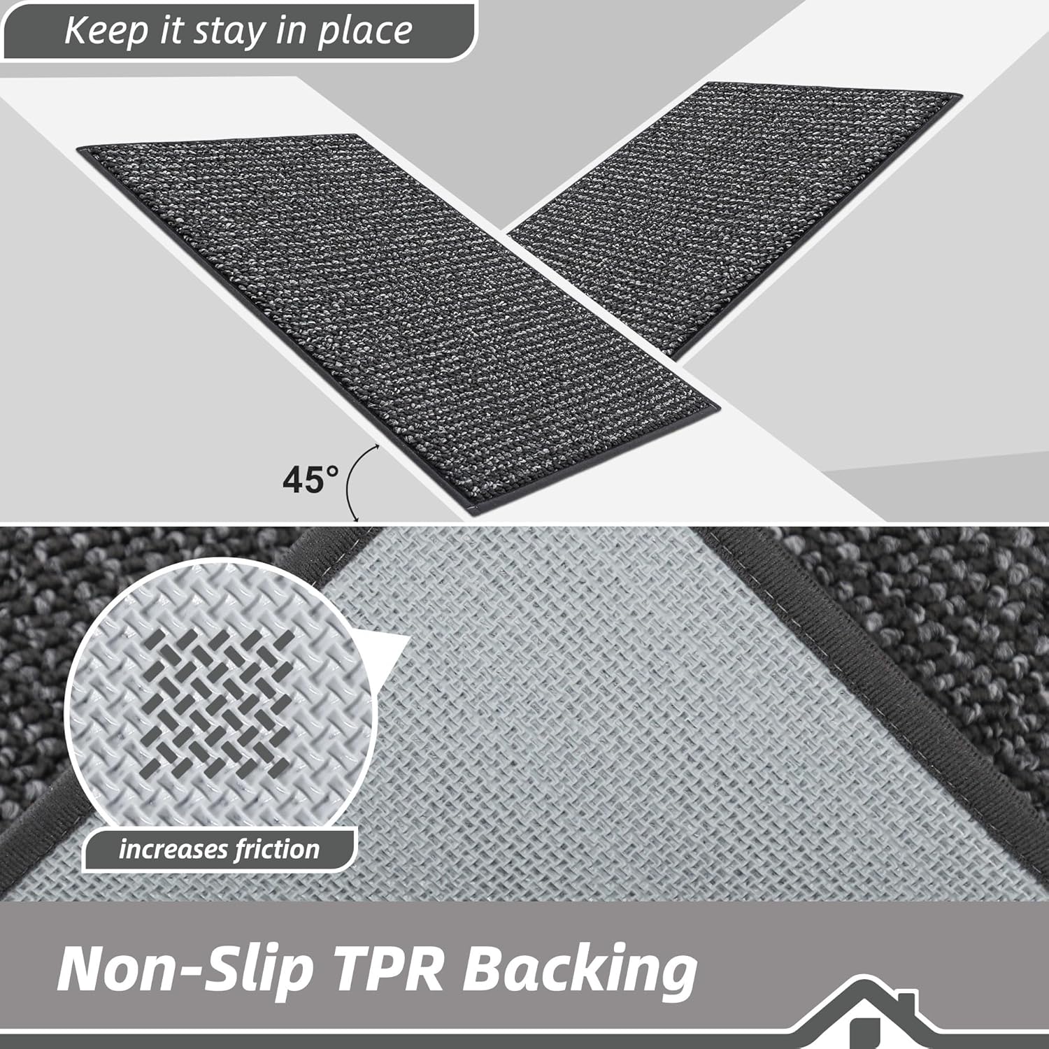 - Non-Slip Backing: The rugs for kitchen are designed with TPR anti-skid backing that ensures the kitchen mats stay firmly on your floor, minimizing the risk of slips, trips, and falls. NOTE: Please make sure the floor is clean and dry before placing