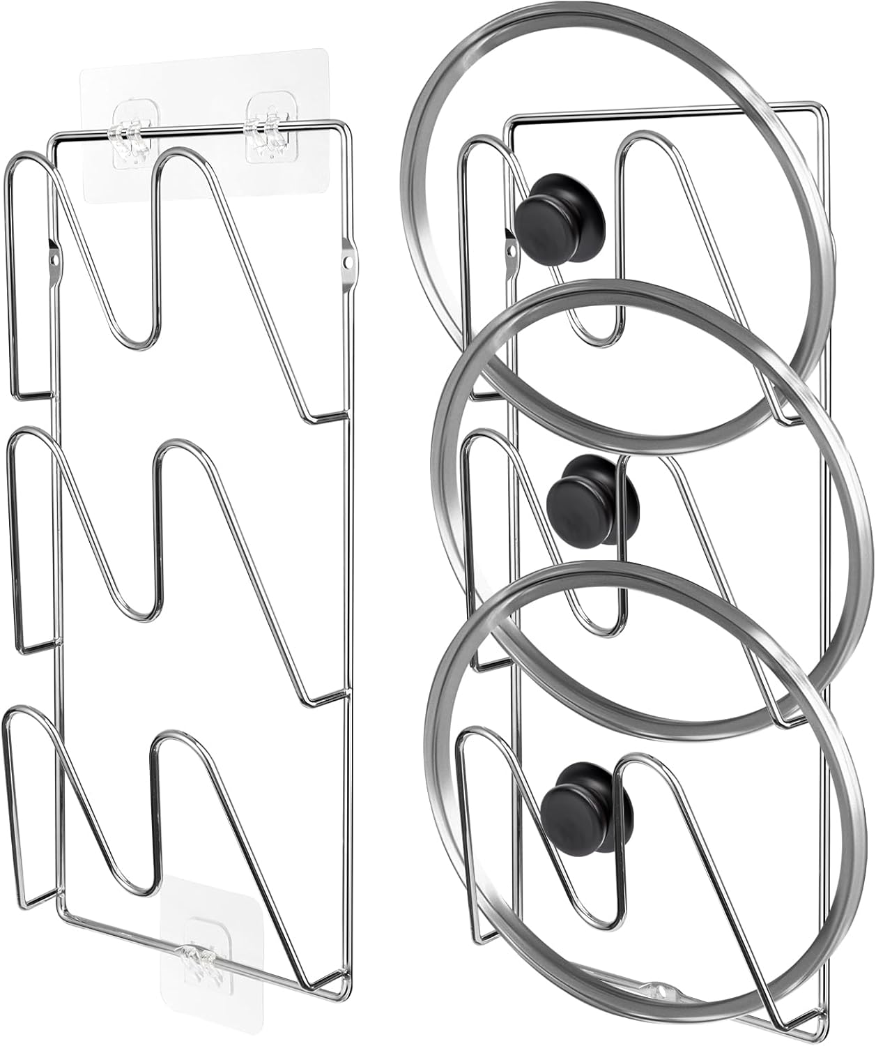 2 Pack Pot-Lid-Organizer, 6-Tier Pots and Pans Lid-Organizer for Cabinet Door/Wall, No Drilling Adhesive Wall/Door Mounted Rustproof Pot-Lid-Holder for Kitchen Organization - silver
