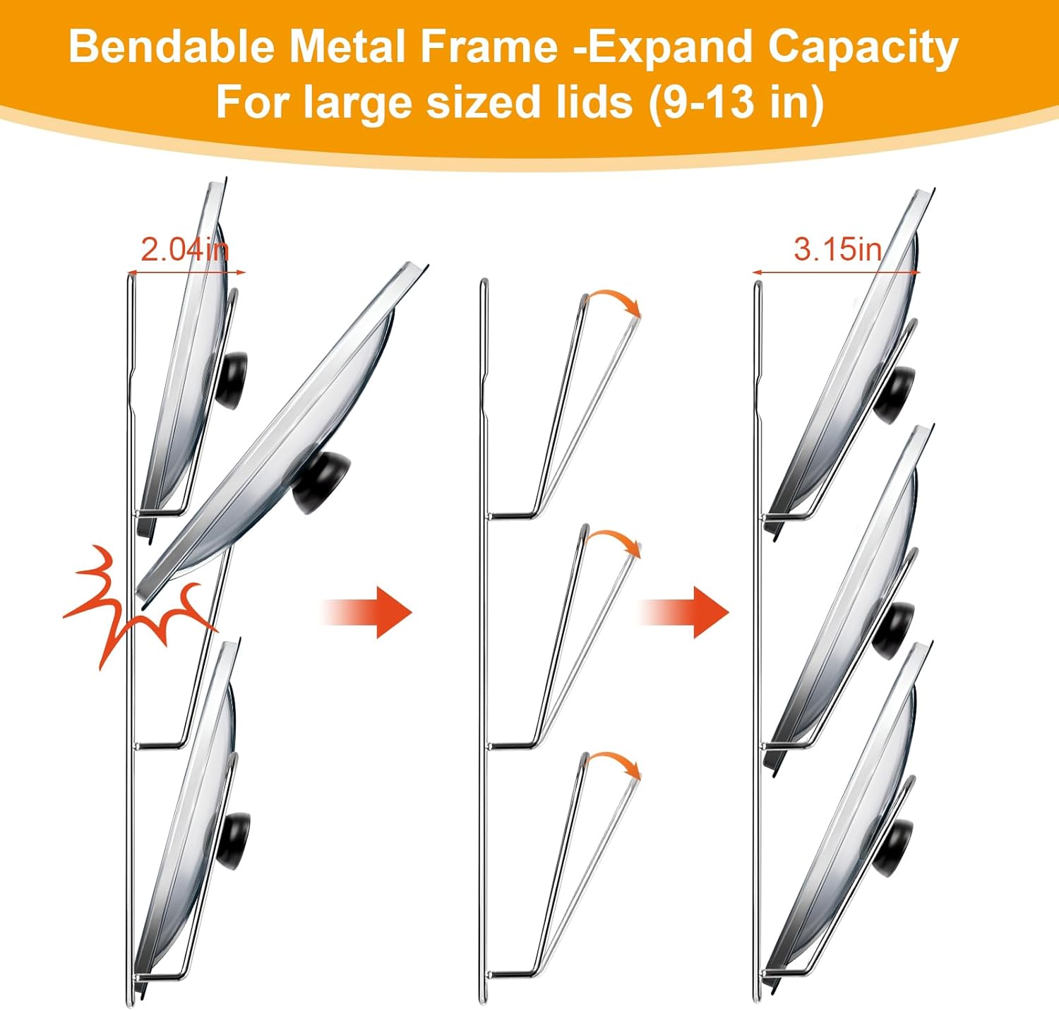 - SPACE SAVING POT LID ORGANIZER: Our pots and pans organizer under cabinet designed for small kitchens maximizes the storage space in your cabinet or wall, avoiding clutter while cooking. No more bending over to rummage through messy piles