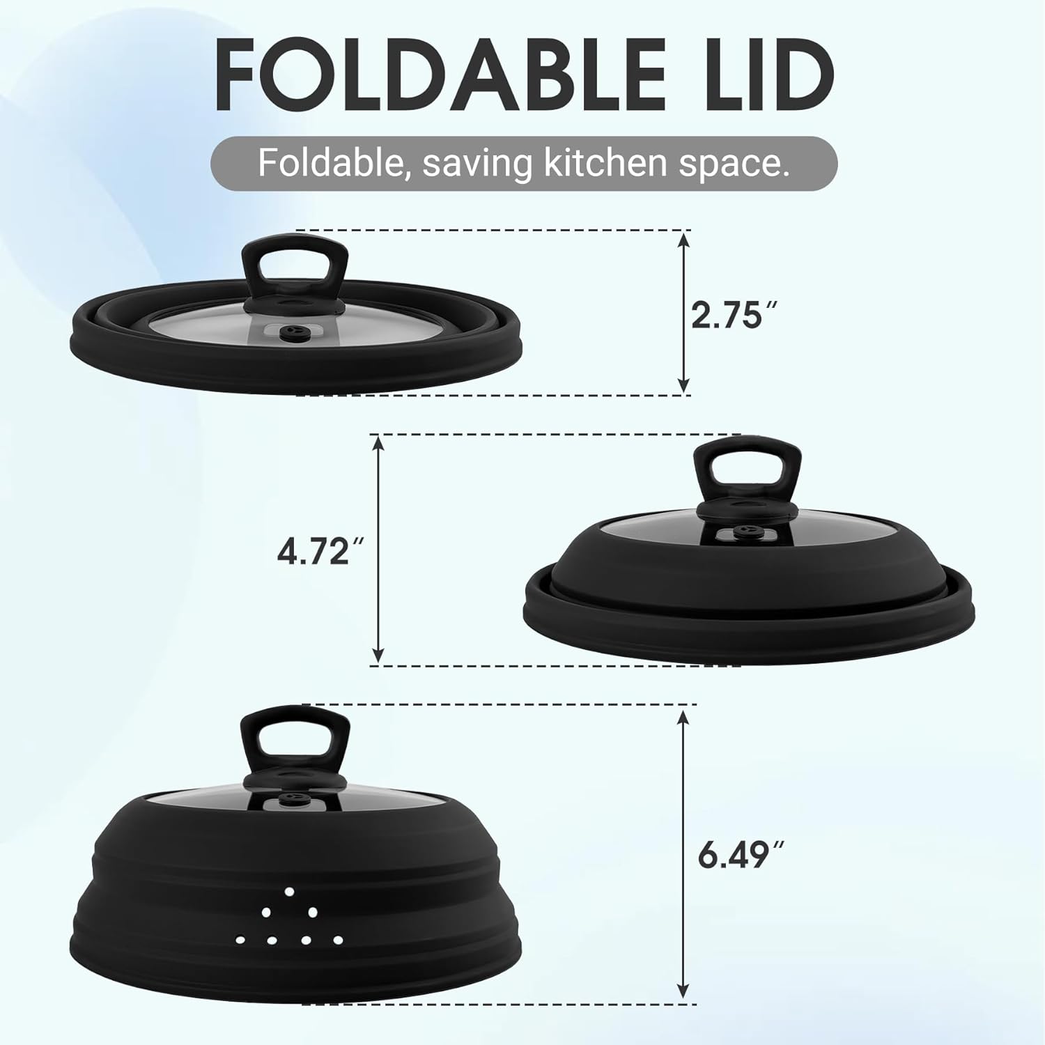 Microwave Splatter Cover Collapsible Silicone & Tempered Glass 11.8 Inch Microwave Cover for Food Splatter Guard with Steam Vents Dishwasher Safe Fits Bowls, Plates & Pots (Black)