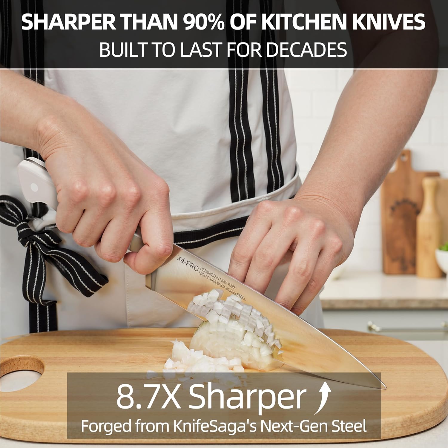 - Confidence in Every Cut: KnifeSaga has developed an innovative steel with optimized structural composition and carbon content. Each blade features an incredibly sharp 10° cutting edge, ensuring every slice is smooth, swift, and precise.