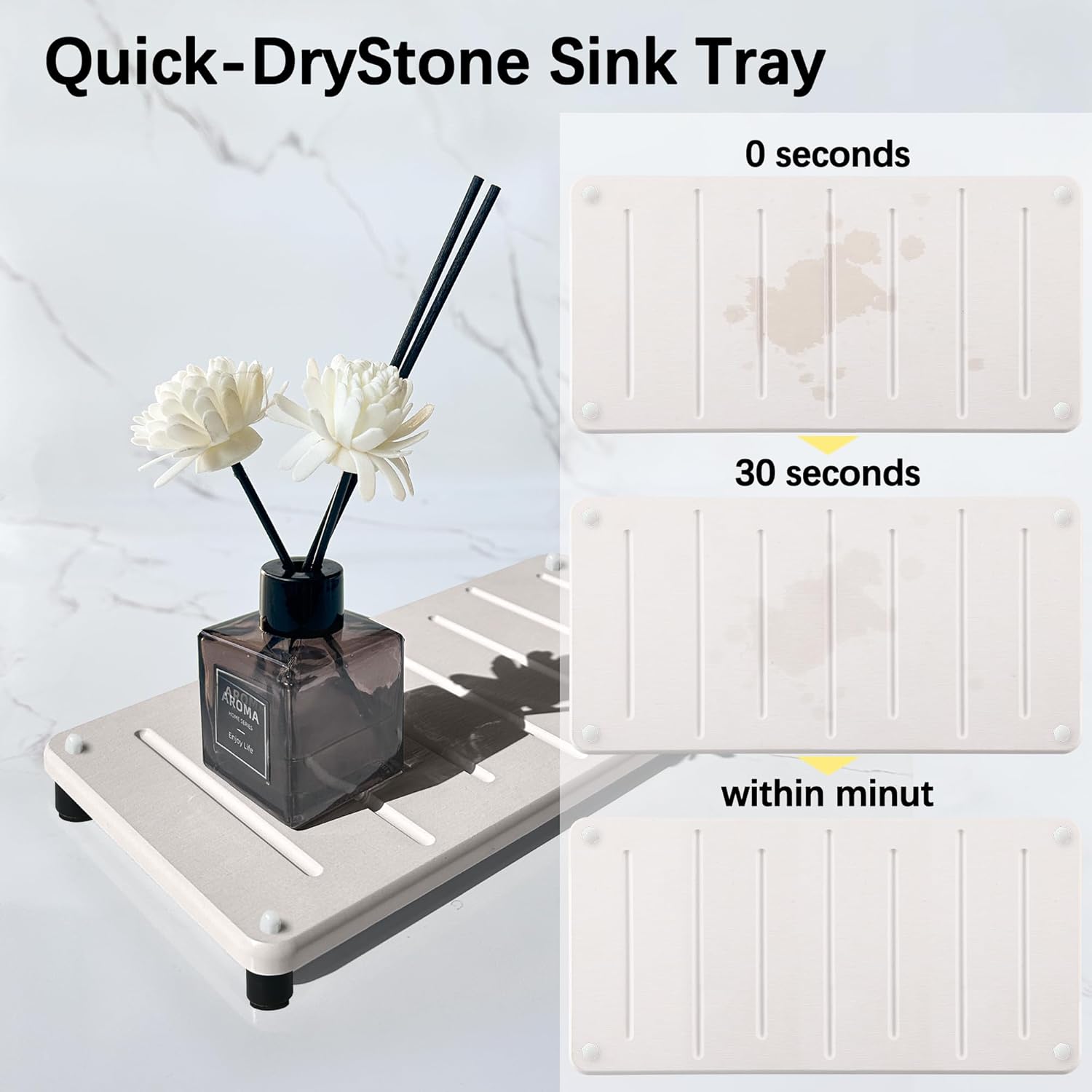- DUAL PURPOSE: Perfect for both bathroom sink and kitchen counter organization, these stone drying mats keep your countertops clean and organized