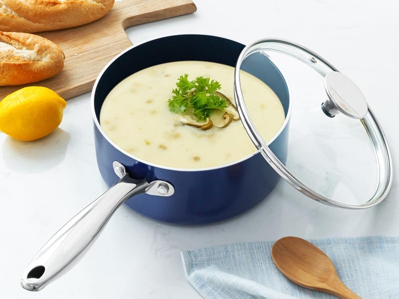 - EXCELLENT NON-STICK PERFORMANCE - This saucepan comes with the healthy ceramic coating which is free from APEO & PFOA. You would get ultra non-stick cooking experience and effortless cleaning.