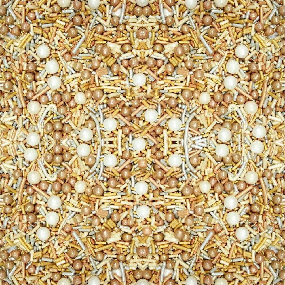 Confect Sprinkle Mix – Gold & White Pearl Sugar Strands for Baking, Cake Decoration & Cupcake Topping – Vegan, Gluten-Free, Nut-Free, Soy-Free, Dairy-Free, Palm Oil-Free – 4.2 Oz