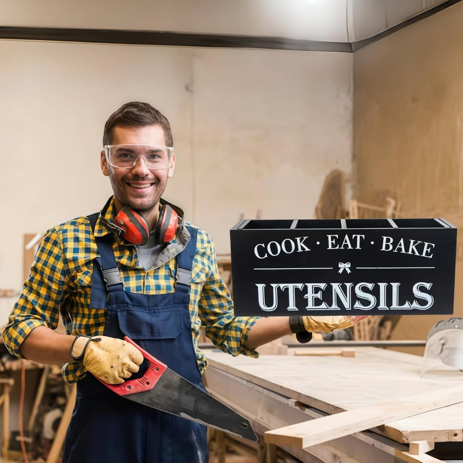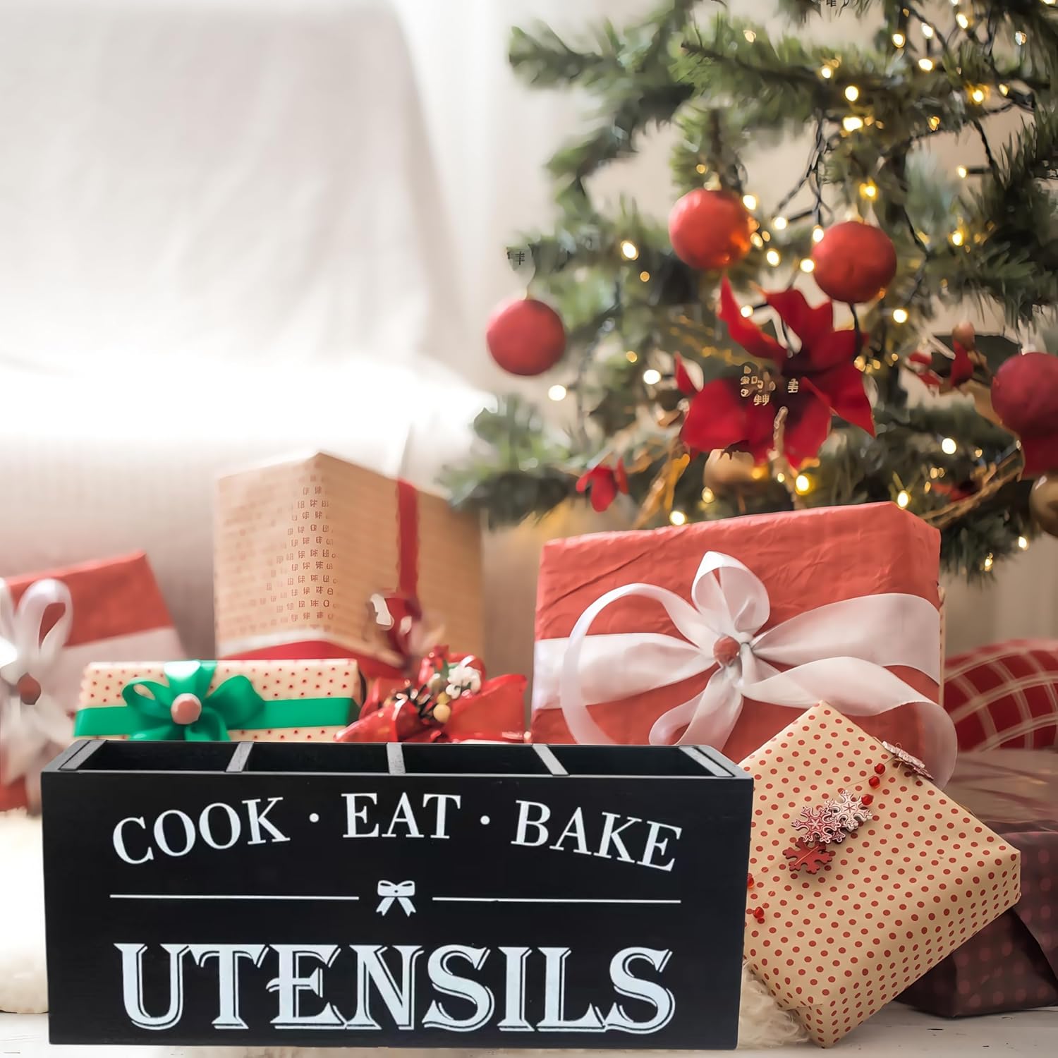 - Versatile Use: The versatility of our wooden utensil holder makes it perfect for a multitude of settings. Use it in the kitchen to keep your cooking tools organized, on the dining table to hold condiments and napkin rings, or even in the office to store pens, scissors, and other desk essentials. Its sleek, neutral aesthetic ensures it blends seamlessly into any environment.