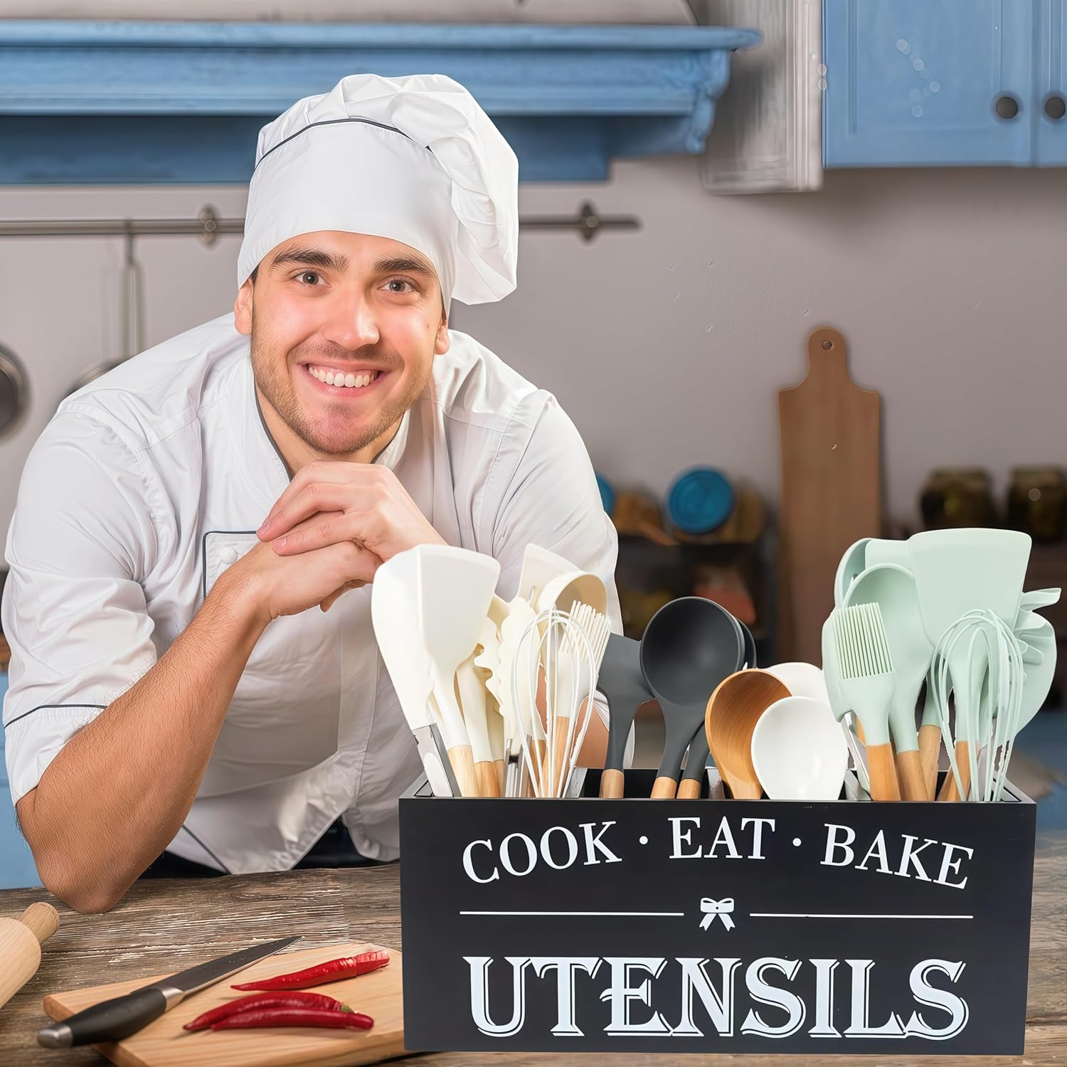 - Durability & Ease of Care: Made from robust wood, this utensil holder is built to last, withstanding daily use and the test of time. The smooth, finished surface is easy to clean; simply wipe with a damp cloth to maintain its beautiful appearance.