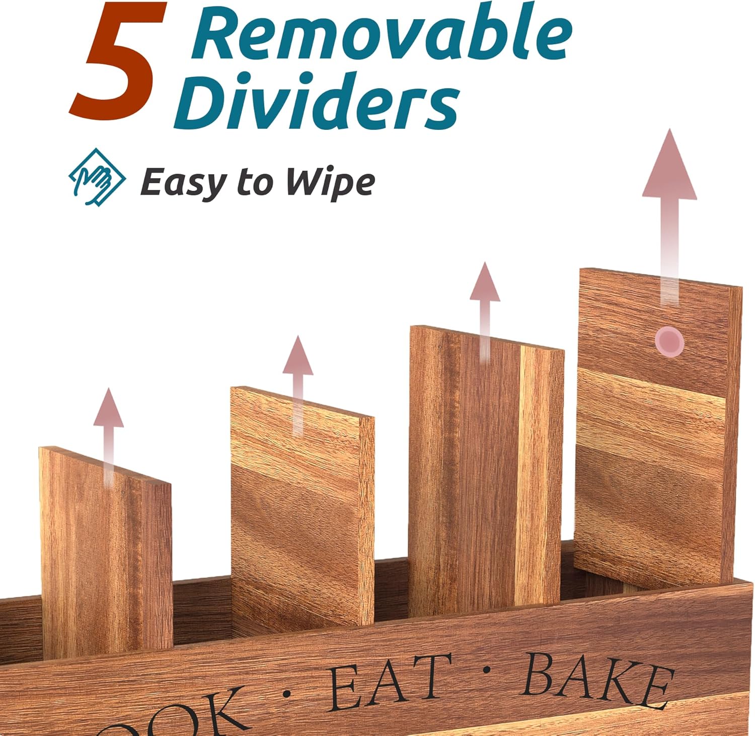 - REMOVEABLE COVER - The middle divider can be removed, more convenient to clean the corner. Please wipe it after cleaning. For the first time to use, we recommend you wipe it with a damp cloth. It is not recommend that you wash wooden products in the dishwasher. Please wash the utensil holder by hand.