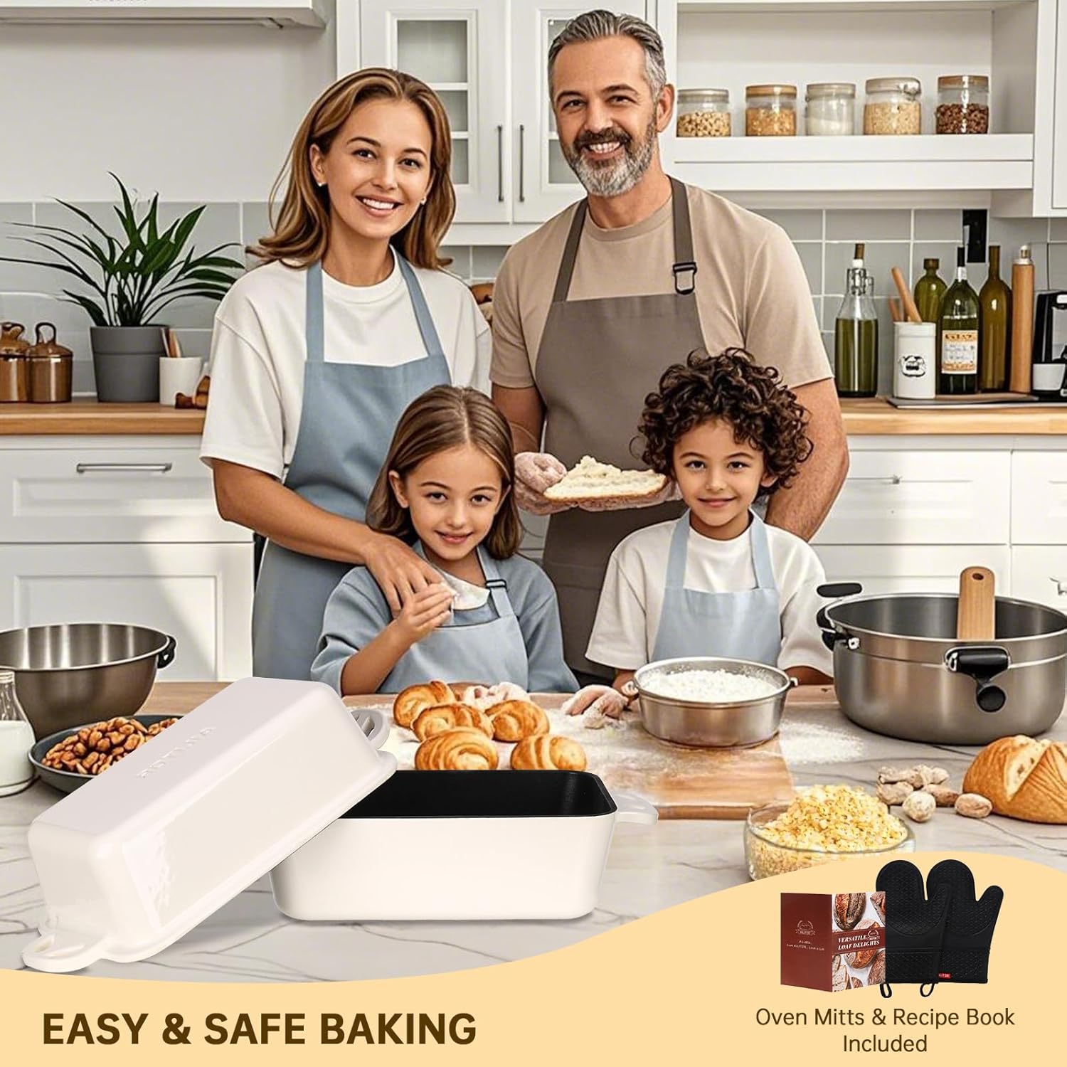 - Golden Crust: Enamel cast iron bread loaf pan with lid delivers even heat; creates a crispy crust and soft interior in sourdough, banana bread and sandwich loaves