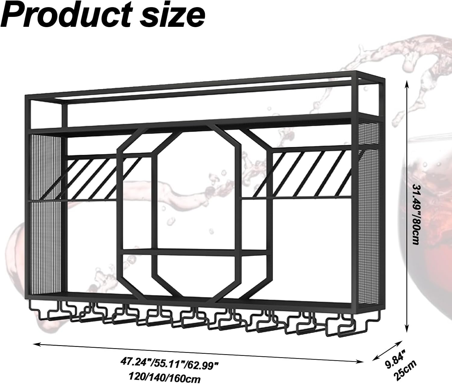 - Simple three-layer design: 47x31.49x9.84in, 55x31.49x9.84in, 63x31.49x9.84in metal frame structure, sturdy and durable, can showcase your wine collection, bringing stunning visual effects.