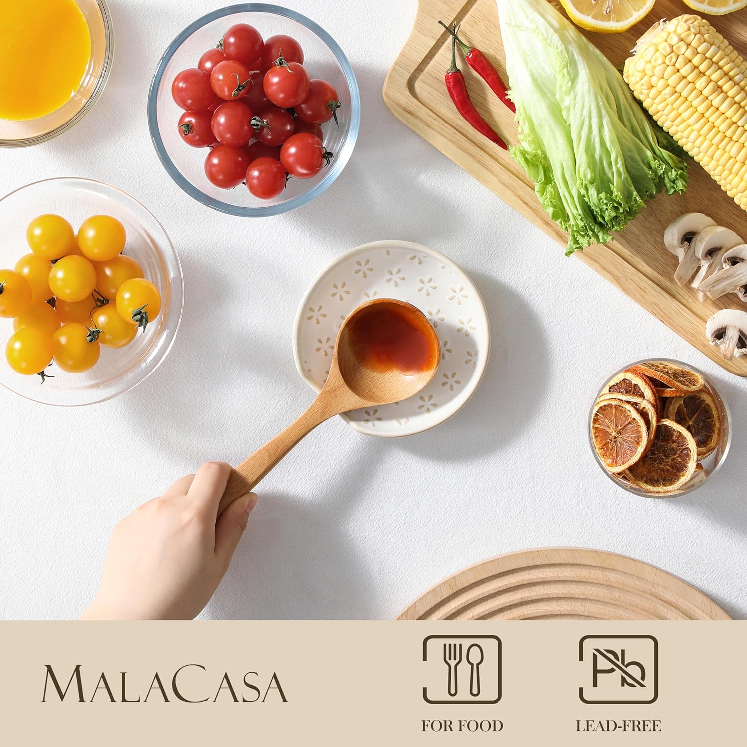 MALACASA Ceramic Spoon Rest for Stove Top, 4.8 inch Cooking Spoon Holder for Kitchen Counter,Utensil Rest for Ladle, Spatula, Spoons or Tongs, Modern Farmhouse Kitchen Décor - 01, Series LYDIA