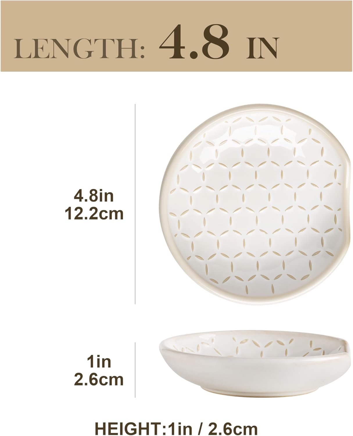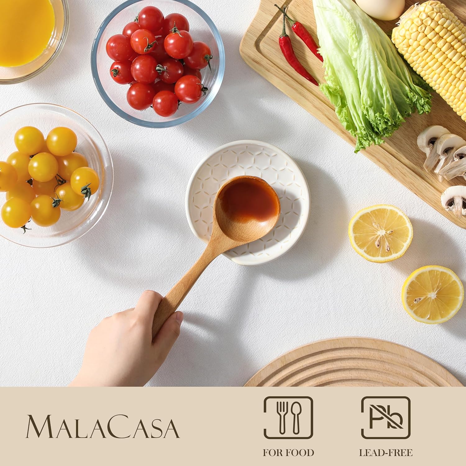 MALACASA Ceramic Spoon Rest for Stove Top, 4.8 inch Cooking Spoon Holder for Kitchen Counter,Utensil Rest for Ladle, Spatula, Spoons or Tongs, Modern Farmhouse Kitchen Décor - 02, Series LYDIA