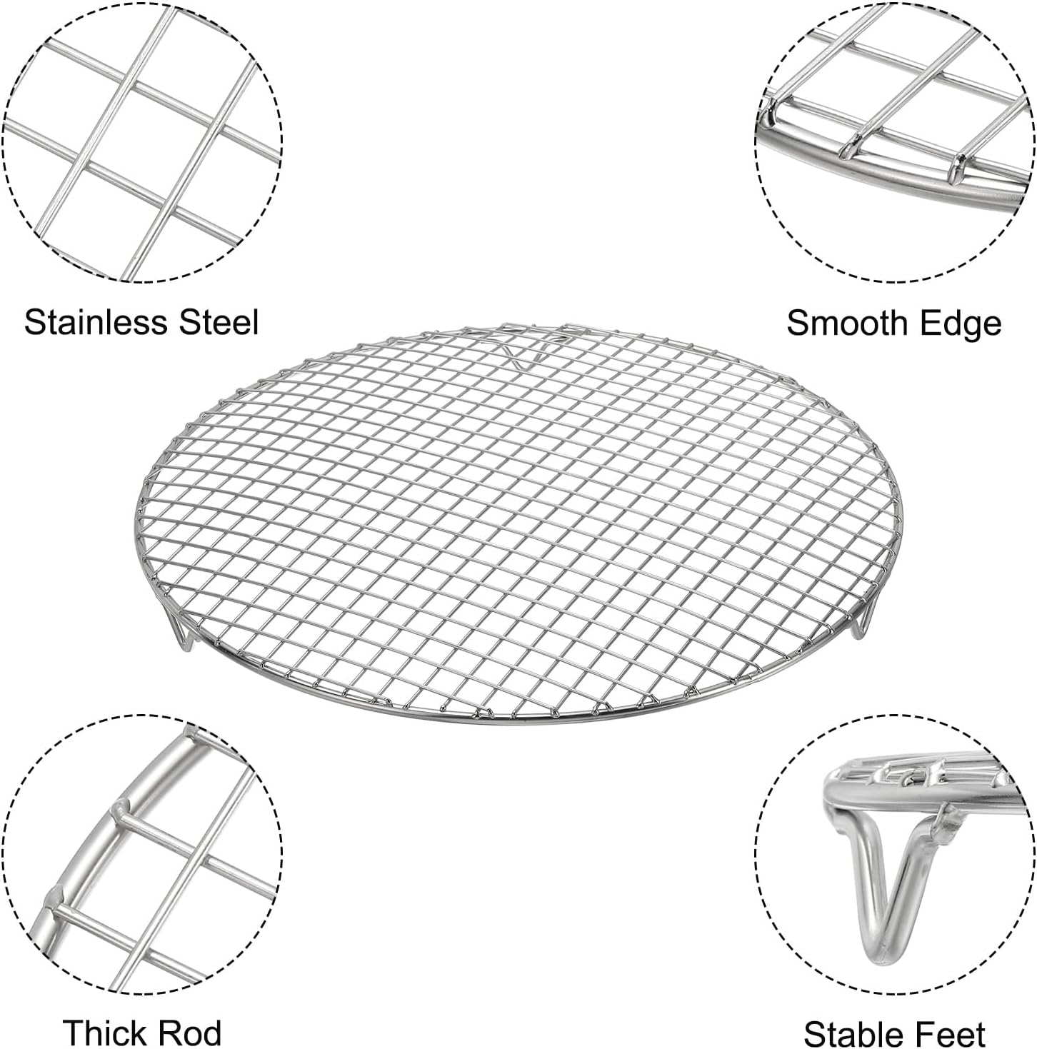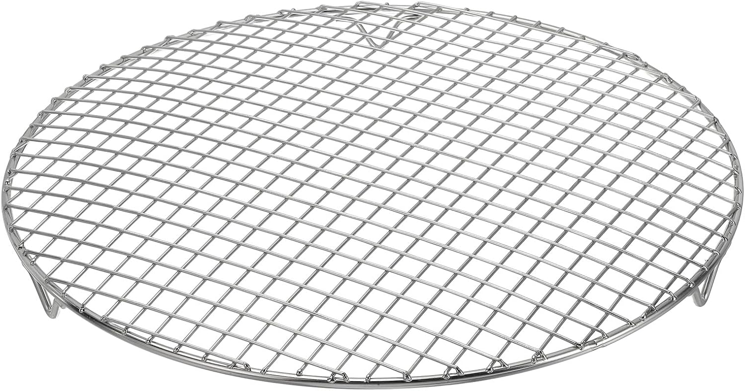 uxcell Round Cooking Rack with Legs, Dia 13.8 Inch 304 Stainless Steel Barbecue Grill for Cooking Baking Barbecue Air Fryer Racks, Silver