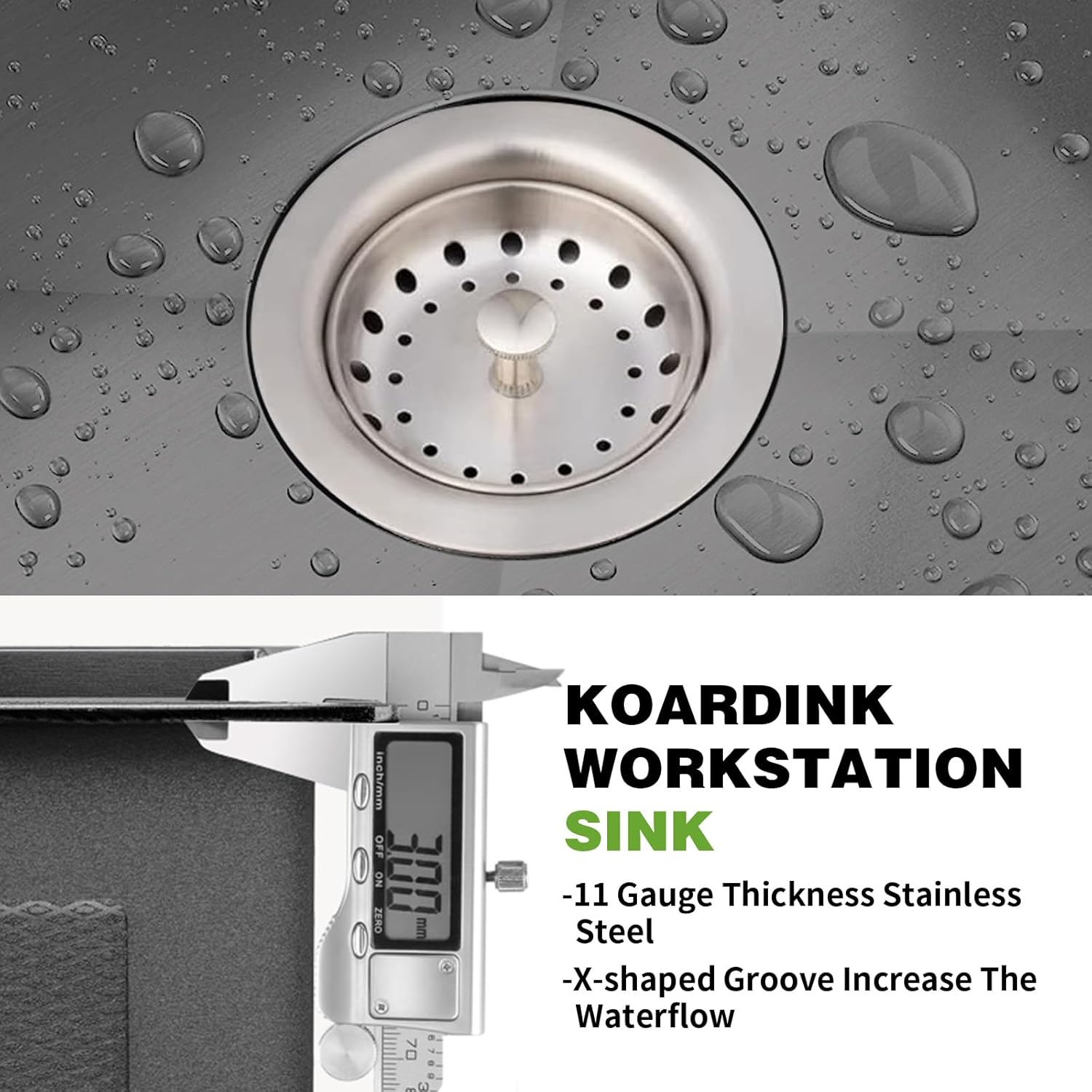 - Surface Technology: Brushed finishing and nano technology make drop in black kitchen sink resistant to scratches and temperature, repeling water and oil stain makes it easier to clean. Anti-condensation coating prevent water droplets forming. Sound dampening pad reduce noise caused by running water or dishwashing.