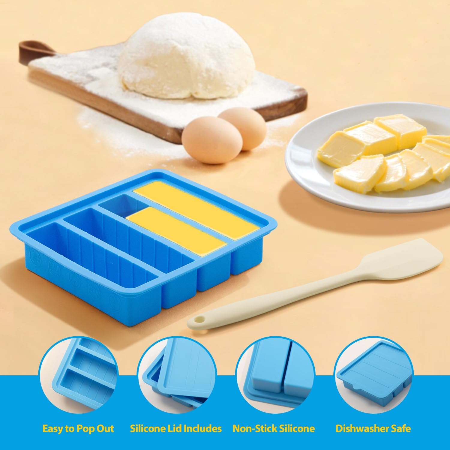 Silicone Butter Mold with Lid & Spatula, Non-Stick Butter Maker Tray and Container for Homemade Butter Storage, Baking, Freezing