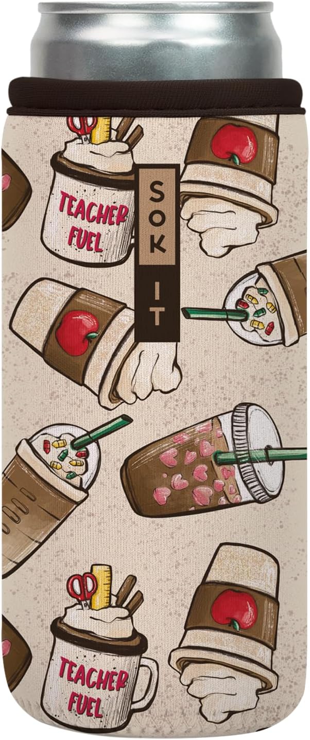 Sok It CanSok Sleeve for Beer & Soda Insulated Neoprene Cover (Teacher's Favorite, 12oz Slim Can Sleeve)