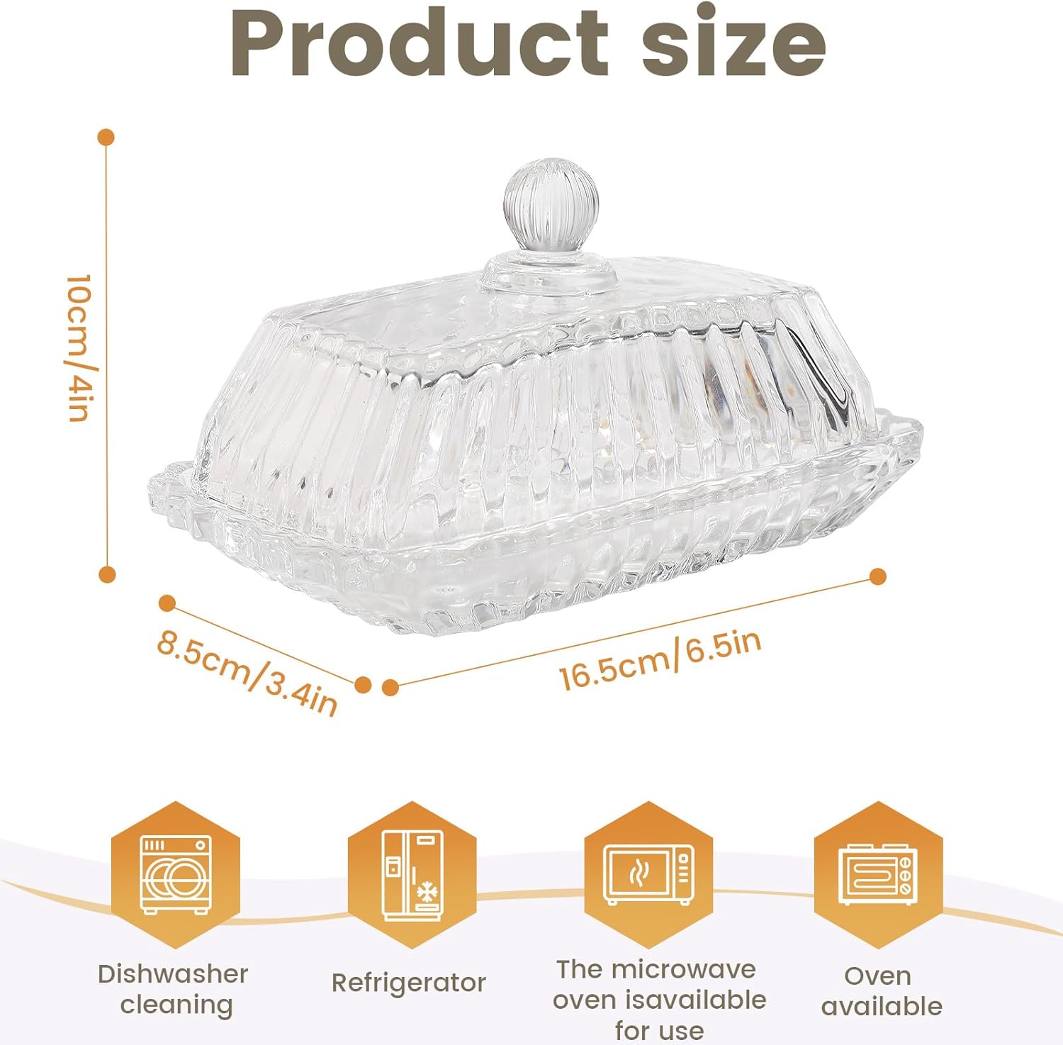 - 【Observable Glass Butter Cover】: The transparent and visual butter lid allows you to clearly observe the usage and storage of butter. The bottom and lid of the butter dish can be perfectly closed, effectively preventing air infiltration and better storing your butter or other food.