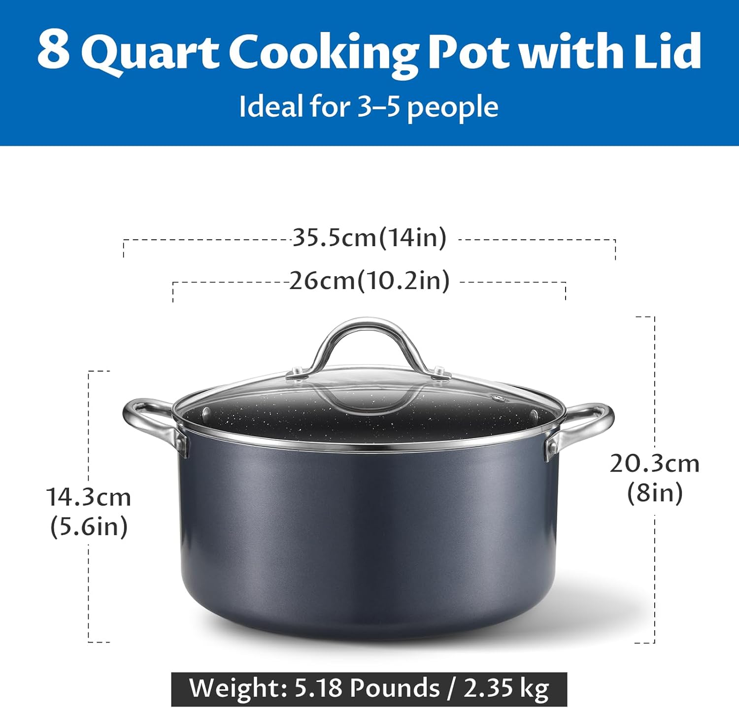 - 8 Quart Pot with Lid: Designed for family cooking, this versatile cooking pot effortlessly prepares generous portions of soups, stews, and pasta—perfect for families of 3–5
