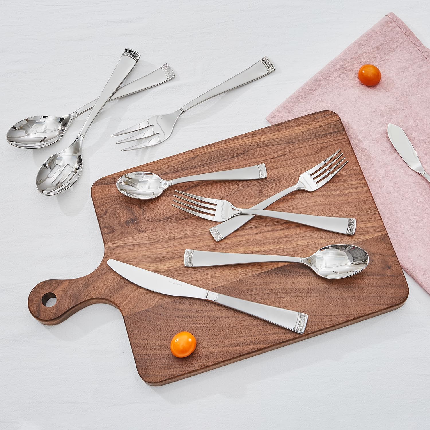 - SILVERWARE SET INCLUDES: 40-piece flatware set includes 8 dinner knives (9 inch/2.76 oz), 8 dinner forks (8.14 inch/2.35 oz), 8 dinner spoons (8 inch/2.3 oz), 8 salad forks (6.95 inch/1.68 oz) and 8 teaspoons (6.8 inch/1.9 oz), service for 8