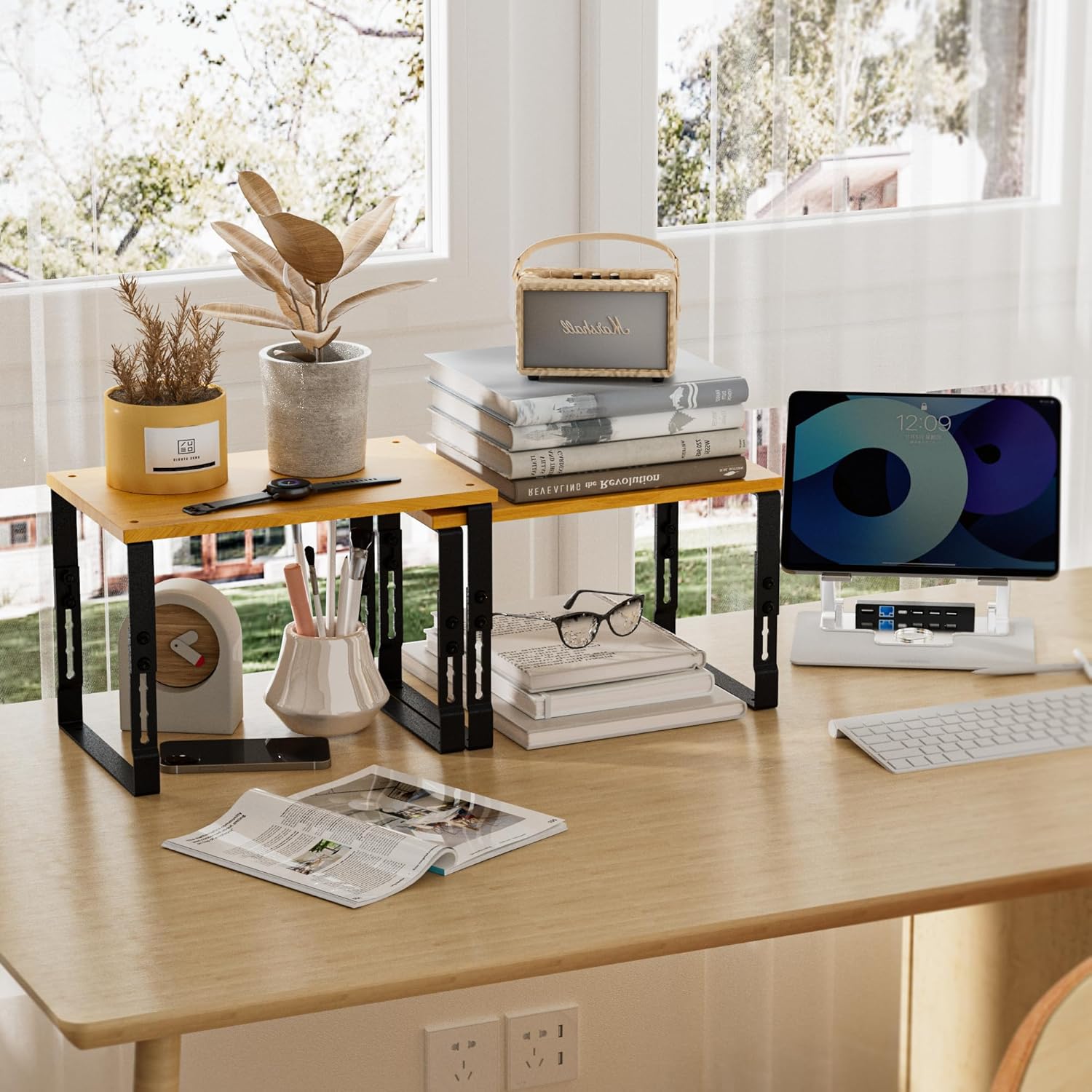 - ✅ Built to Last: Industrial-Grade Strength:Crafted with thick metal frames and reinforced engineered wood, each shelf supports up to 50 lbs. Triple-screw side panels ensure wobble-free stability, even when fully loaded. Trust these shelves to handle heavy pots, tools, or collections with ease.