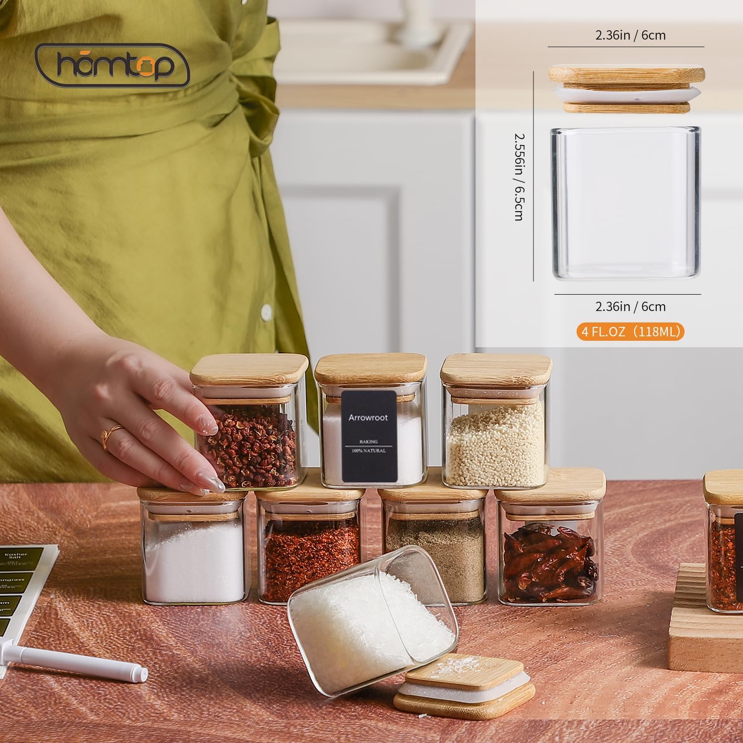 - What you get - One pack of labels, 24pcs of 4 oz glass spice jars, 1 marking pen with eraser.