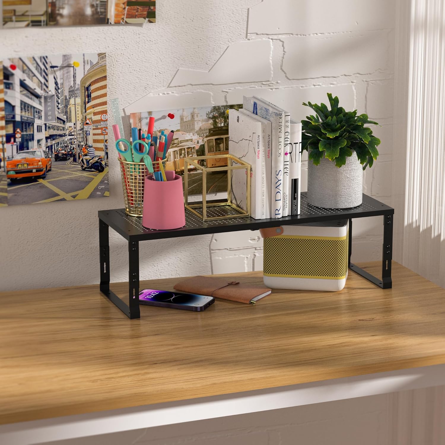 Heavy-Duty Adjustable Metal Shelf Organizer - Expandable & Stackable Pantry Storage Rack for Kitchen, Bathroom, RV, Cabinets(3 Packs/Black, Medium)