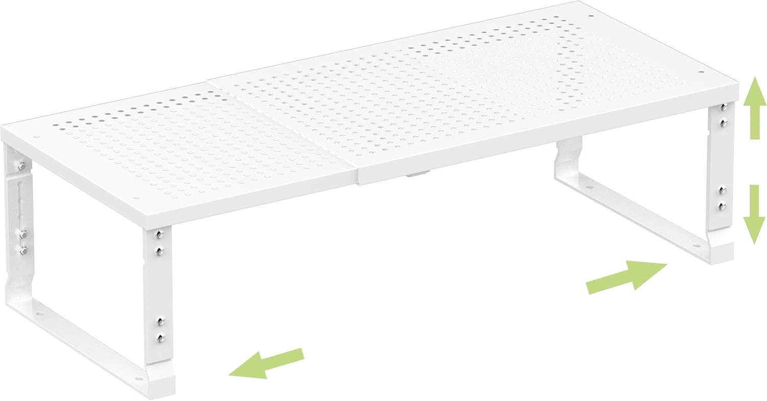 Heavy-Duty Adjustable Metal Shelf Organizer - Expandable & Stackable Pantry Storage Rack for Kitchen, Bathroom, RV, Cabinets(1 Pack/White, Medium)