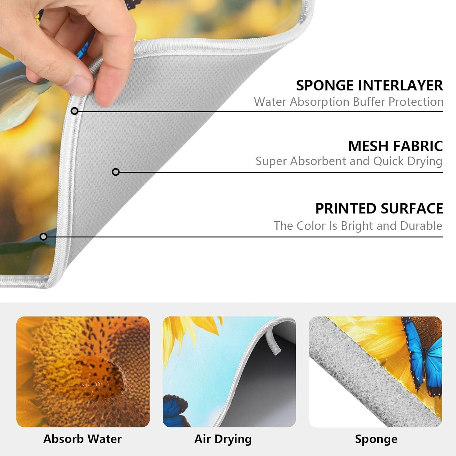 Blooming Sunflowers Blue Butterfly03 Dish Drying Mat for Kitchen Counter Absorbent Microfiber Small Drying Pad Dish mats for Kitchen Countertops 16 x 18 Inch