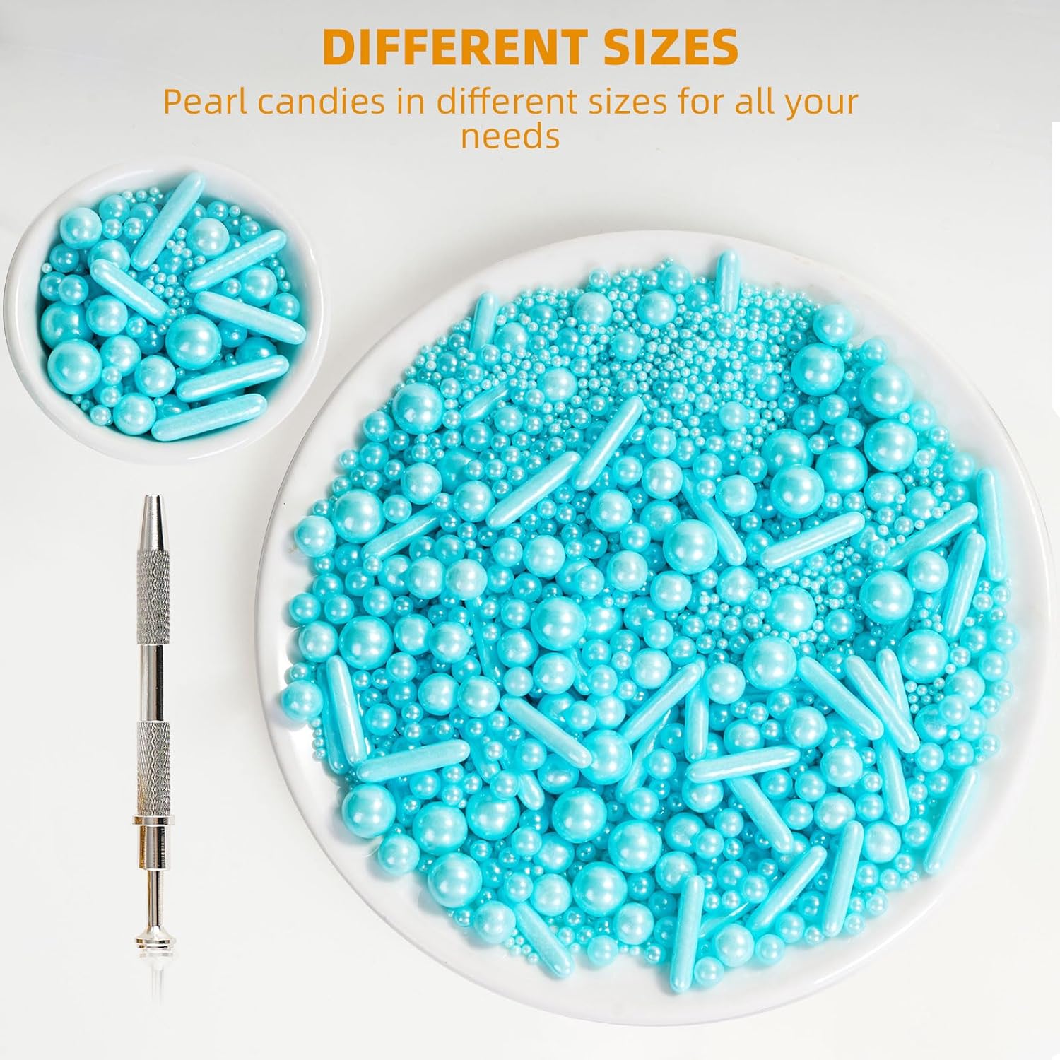 Kasvan Blue Mix Sugar Sprinkles - Edible Candy Pearls with 4-Claw Sprinkle Pen,118g/4.16 Oz, Gift Box Pack, Baking Cake Decorations, Ice Cream Toppings and Cookie Decorating (Blue)