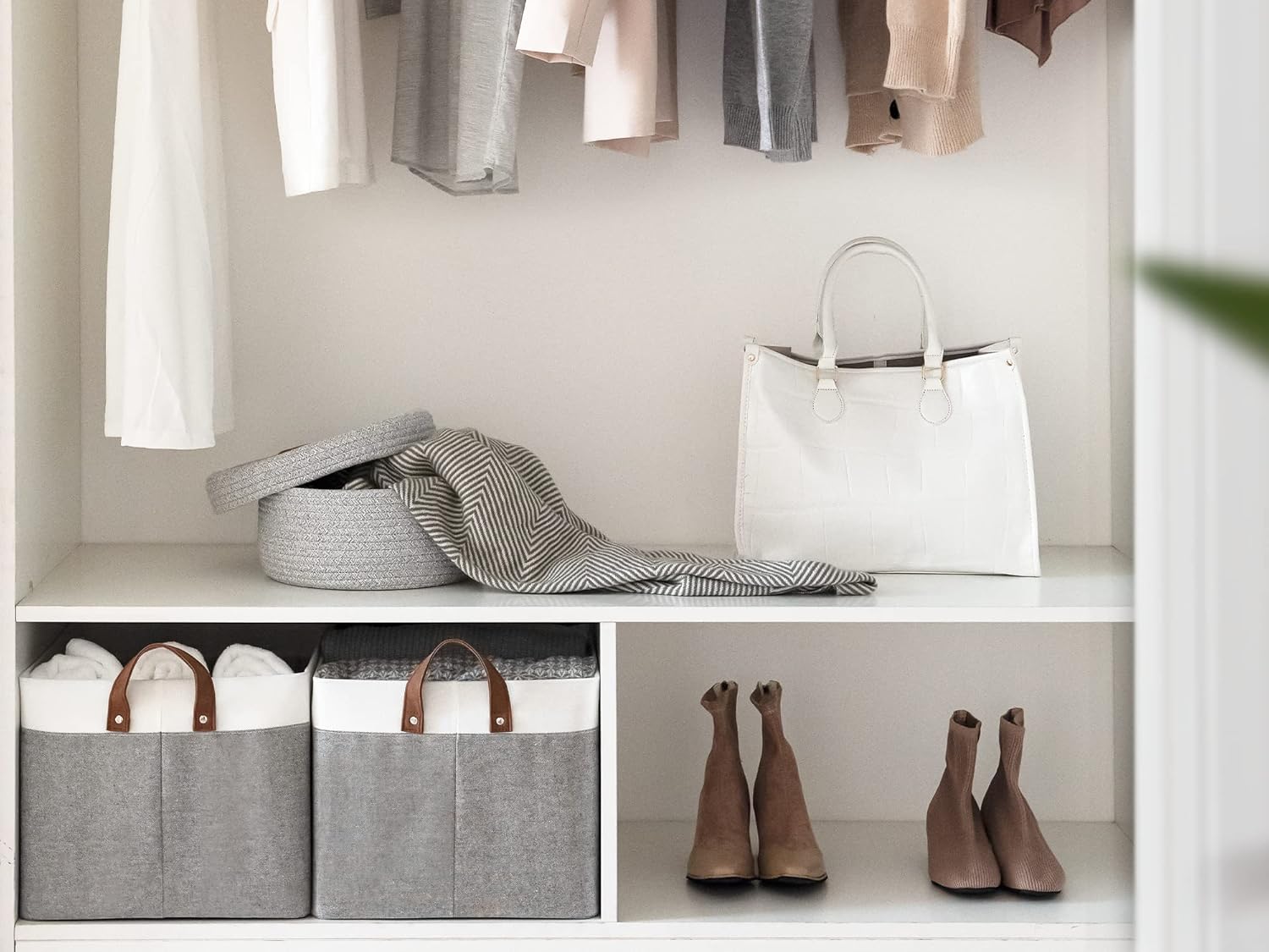 - Breathable Fabric: Lightweight, durable fabric allows airflow to keep items fresh and clean, while the neutral tone pairs naturally with most décor styles.