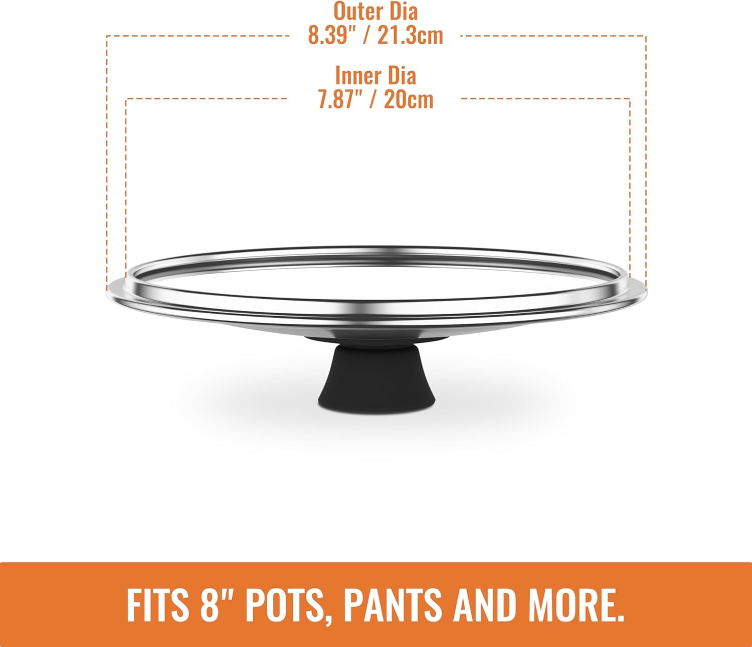 - 8 INCH PAN LIDS: Crafted with HD tempered glass, leak proof SS304 steam vent, widened stainless steel rim and heat resistant silicone knob. The CnSneg glass lid fits most 8 inch diameter cookware of pots, cast iron skillets, wok, saucepan, and frying pans. Dishwasher safe for effortless cleaning.