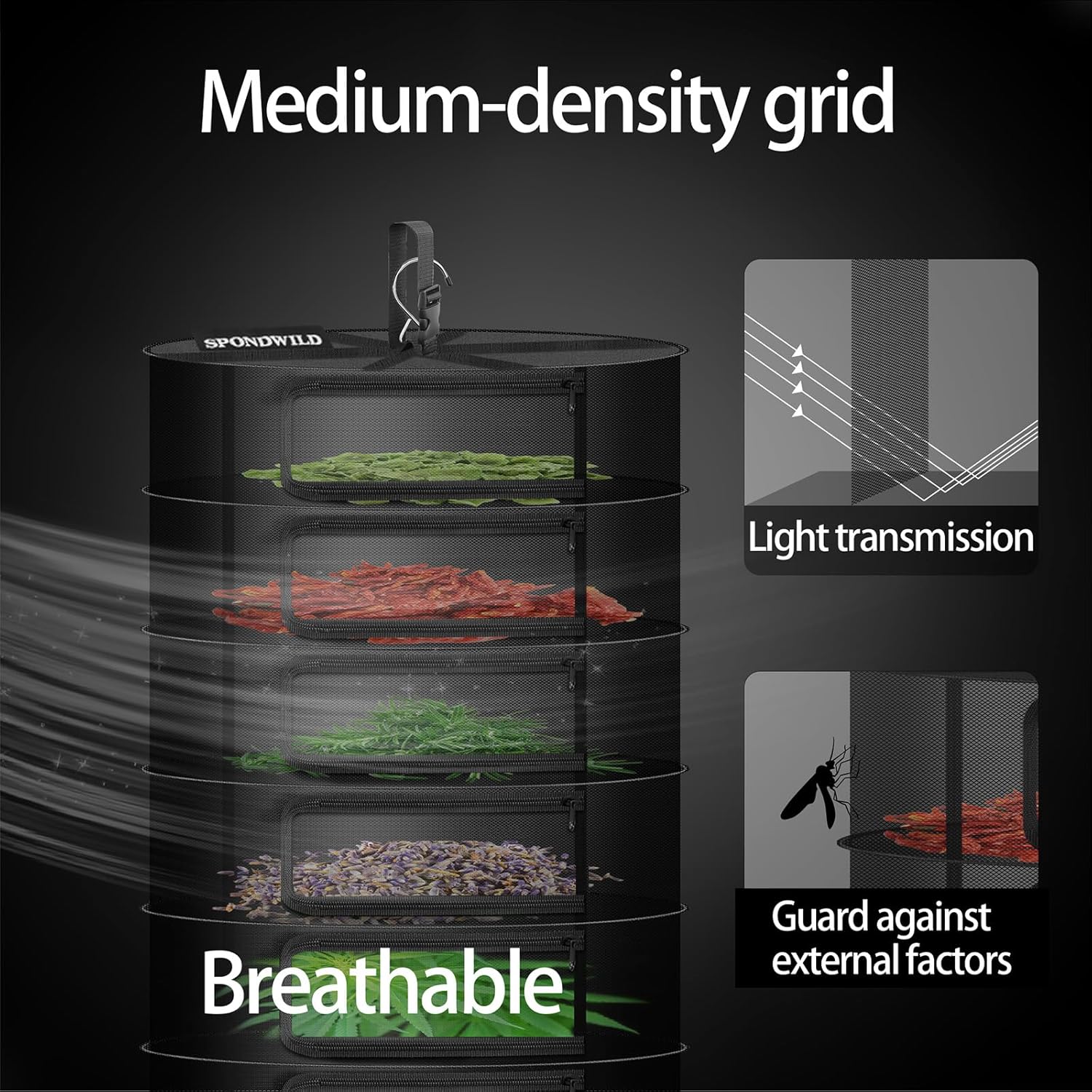 - Eco-Friendly and Durable: Herb drying rack is composed of breathable dese nylon mesh and durable non-toxic polyester mesh, environmentally friendly and effectively away from the insects、Water-resistant top material.