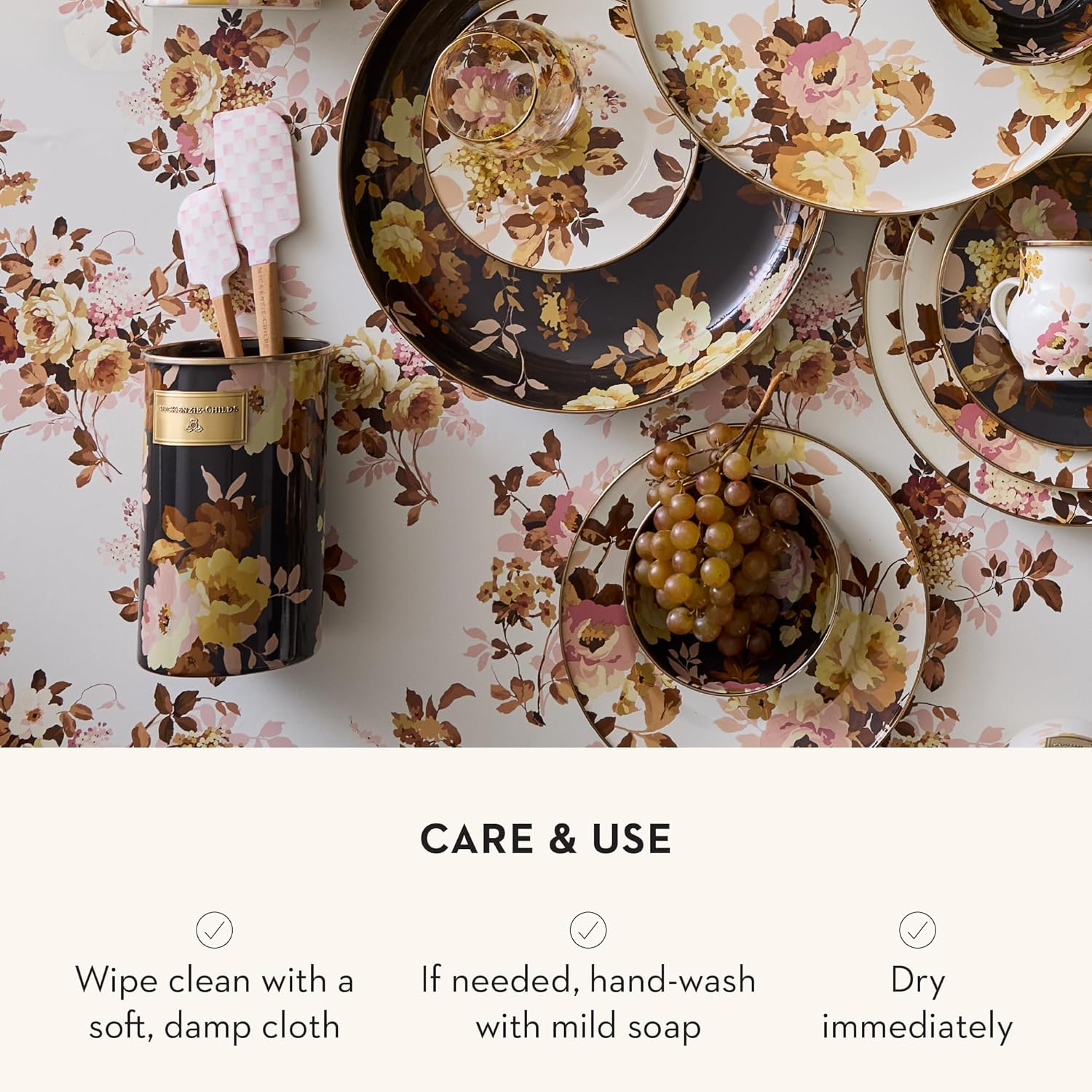 MACKENZIE-CHILDS Wild Rose Brown Utensil Holder